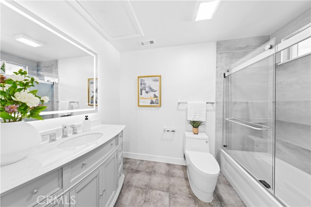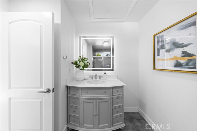 first floor offers two bedrooms and one full bathroom, with one bedroom ideal as a private office. All bathrooms have been fully remodeled with marble-look