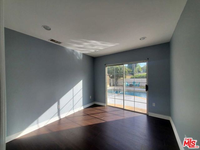 ***NOTE: PROPERTY AVAILABLE FOR SHOWINGS AND LEASE NOW***Absolutely gorgeous home in Tarzana neighborhood yet close to the 101. Wonderful open floor plan with den, dining and living rooms flowing seamlessly into one another and all boasting beautiful tile/hardwood floors that continue throughout the hallways. Custom galley kitchen with floor tile extending into the living area, stainless sink and appliances, faucets and gleaming granite counters with backsplash and breakfast bar. Both bathrooms feature designer touches and vanities. 400 square foot Guest House features a bathroom with shower is included in square footage. Backyard has a large gleaming pool and front and back lawn with lush landscaping. Furnished and unfurnished options available. Long and Short term rental options available