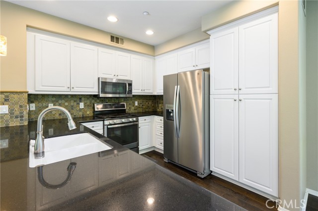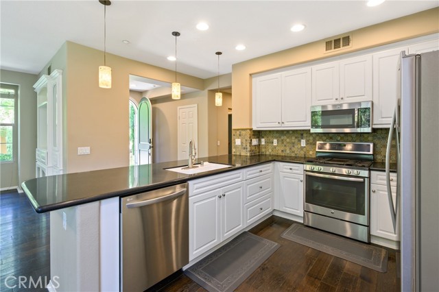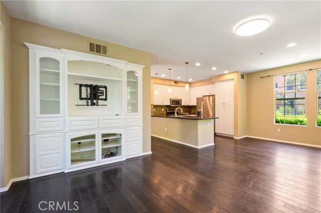 LOCATION! LOCATION! LOCATION! STUNNING VIEW LOCATION SINGLE-LEVEL CORNER UNIT shows like a model with many upgrades. A rare unit with its front door opening onto vast grass areas and mature trees providing shade and privacy. Living room is detached from neighbors with windows on each wall providing lush views while ensuring privacy. REFRIGERATOR, WASHER, DRYER, AND WATER SOFTENER SYSTEM INCLUDED. Large entryway leads to spacious kitchen featuring a QUARTZ COUNTERTOP, CUSTOM STONE FULL BACKSPLASH, upgraded stainless steel appliances, and white cabinets with built-in pullout drawers. The open kitchen overlooks the gorgeous great room which has been upgraded with a beautiful built-in media cabinet and ENGINEERED WOOD FLOORING. As you enter the MASTER SUITE, you'll appreciate the highly upgraded walk-in closet and spacious master bathroom which includes porcelain tile flooring, private toilet room, and deep bathtub. INDIVIDUAL POWDER ROOM is down the hall and a separate laundry room provides direct access to garage. All entry, doorways and hallways are wide and easy to access. Right outside the doorstep, you’ll find a charming community gazebo and outdoor fireplace great for gathering and relaxation. Walking distance to Woodbury Elementary school, Woodbury commons and Woodbury Town Center. Enjoy Woodbury’s 7 resort style pools and spas, Fireplaces and barbecue areas, neighborhood gardens, sand volleyball, basketball courts, pickleball court, tennis court, sport courts and much more.