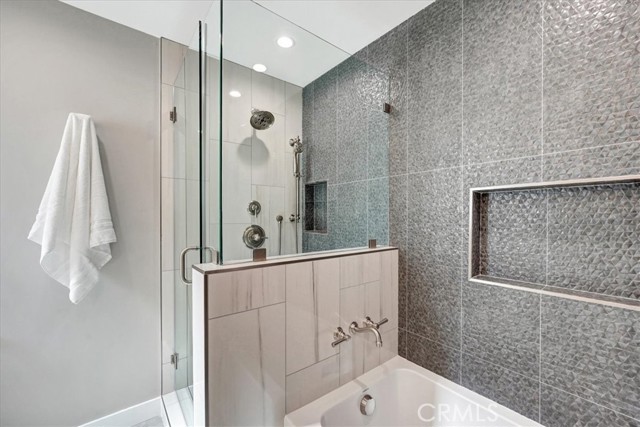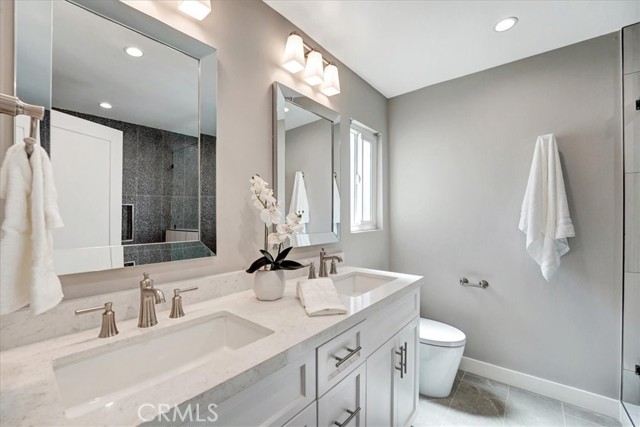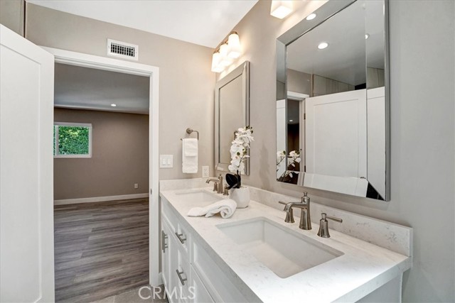 Beautiful and sophisticated extensively remodeled contemporary home with pool and spa in desirable Chandler Estates in Sherman Oaks. 4BR, 2.5BA, approx. 2,517sf with exquisite finishes and superb quality. Dramatic spacious living room with soaring vaulted beamed ceilings and an open floor plan with an infusion of natural light. Elegant family room with inviting fireplace opens to formal dining room leading to a brilliant large kitchen. FR with sliders to a covered patio and remodeled large heated swimming pool and spa with newer equipment and decking ideal for Al Fresco dining, relaxing or entertaining in a private setting. Large sensational chef’s kitchen with quartz counters, Bosch stainless steel appliances with double door refrigerator, 6-burner gas range, and plentiful cabinets. A powder room and laundry room with washer and dryer complete the lower level. Upstairs with 4 bedrooms and 2 bathrooms including the massive primary bedroom with walk-in closet and luxurious bathroom with double sinks, separate shower and tub. Stunning remodeled hallway bathroom with double sinks and shower over tub. The 3 secondary bedrooms are well proportioned. Residence boasts throughout designer gray tones wide plank laminate flooring and showcases recessed lighting and fresh interior new paint. 2 car attached garage with direct access and expanded driveway, double pane windows, nest thermostat, newer water heater and central air and heat. Newer “Cool” roof for additional energy savings and an EV charger. Weekly gardener and pool services included. Enjoy a contemporary lifestyle with sublime comfort and a modern design. Close to famed shops and restaurants on Ventura Blvd, Trader Joes, shopping, freeways, studios and the Westside. Prepare to be impressed! A winner!