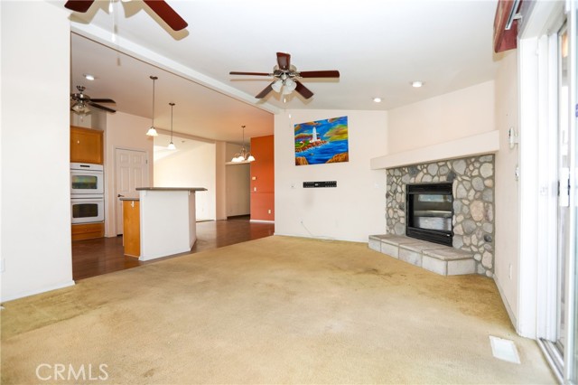 This home features 4 bedrooms and 2 bathrooms with a blend of tile, wood, and linoleum flooring. The inviting entry opens to a cozy living room that flows into the kitchen and dining area, leading to a comfortable family room with a fireplace.