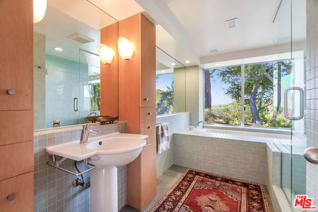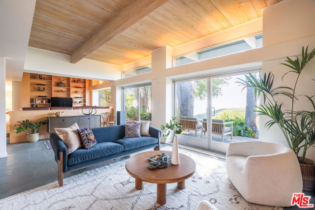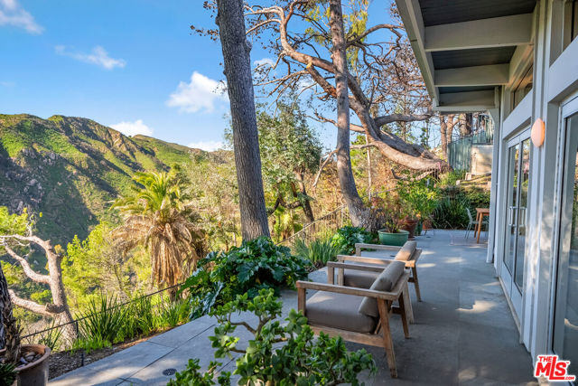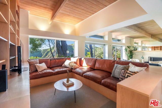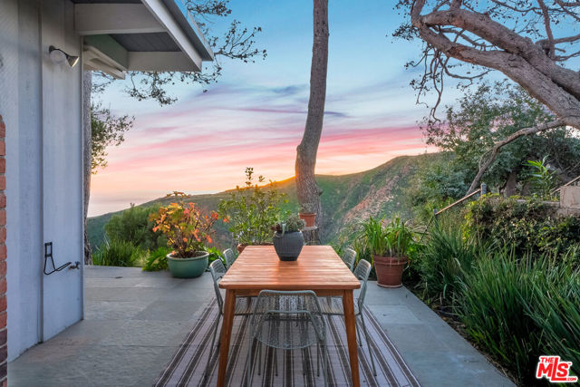 Leave the big city stresses behind when you enter this Zen-like retreat with breathtaking views of the ocean, canyon and mountains. Walls of glass provide the ultimate inside/outside environment, while skylights and clerestory windows allow the infusion of natural light.There is an open floorplan, with the entrance leading to the living room, dining area and family room, all with expansive views and opening to the rear patio and garden.Enjoy similar views from the serene primary suite, with a spacious walk-in closet that could also function as a private office. The second bedroom is also ensuite.The landscaped rear yard features fruit trees and multiple inviting spaces designed for relaxation and entertaining. The garage has direct entry into the house.This home provides a unique opportunity to experience a tranquil lifestyle while still having access to local schools and all the Palisades Village has to offer just moments away.