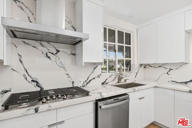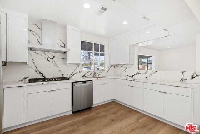 The entire house, reconstructed in 2023, features three bedrooms and two bathrooms, illuminated by amazing natural light. The interior boasts well-assessed lighting, an open floor layout, and expansive windows throughout, with folding doors that seamlessly connect to the backyard. The house is adorned with beautiful wooden flooring, and the open kitchen is equipped with top-tier stainless steel appliances, including a double oven, dishwasher, and double-door fridge. The European kitchen cabinet is complemented by quartz countertops, and there's a dedicated laundry room area. The master bedroom offers a walk-in closet and a master bathroom adorned with floor-to-ceiling Italian tiles, a standing shower with a glass door. The additional bedrooms share a bathroom featuring entirely Italian tiles, high-quality cabinets, and bathroom hardware. The property includes a charming backyard, though there is no garage, ample parking space for up to two cars is available in the gated driveway.