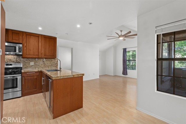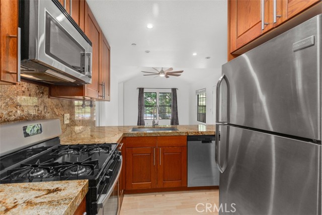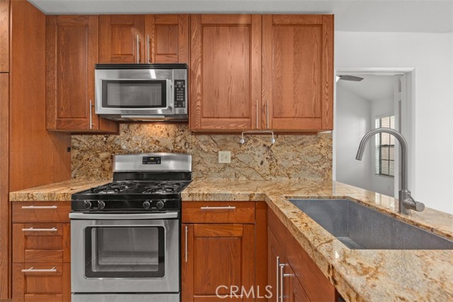 Terrific 2 Bdrm/2 Bath unit in Vista Pacifica in San Clemente. New paint, granite counters, bamboo flooring throughout. This is an upstairs unit with two bedrooms and two bathrooms. One bedroom has an additional loft space above with stairs that can be used for an office or play area. The kitchen has upgraded appliances and includes a refrigerator and a washer/dryer. There is a great little patio area off the front door that has privacy with an exterior door you can close and lock. The unit has a detached one car garage and one assigned parking space. This unit has AIR CONDITIONING.