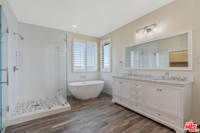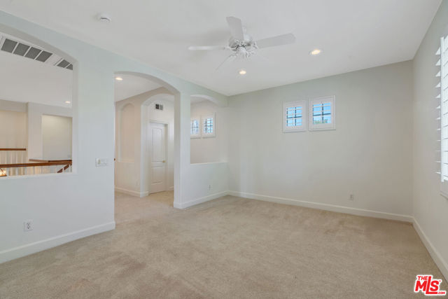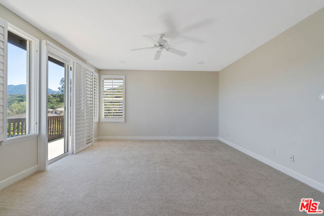 Welcome home to this private, spacious, and beautifully upgraded residence located on a quiet cul-de-sac in the highly desirable Dos Vientos community of Newbury Park. This stunning home offers 4 large bedrooms and 3.5 bathrooms, including a downstairs en-suite bedroom, plus a versatile second-floor bonus room that can easily serve as a fifth bedroom, home office, or media room. Designed with both comfort and style in mind, the home features a grand entryway that opens to a formal living room and elegant dining room perfect for hosting gatherings and entertaining guests. The well-appointed kitchen, complete with stainless steel appliances, opens to a warm and inviting family room highlighted by a cozy fireplace.The expansive primary suite serves as a peaceful retreat, featuring a spacious bathroom, large walk-in closet, and stunning views of the surrounding open space. Plantation shutters throughout add timeless charm and privacy, while recessed lighting enhances the home's bright and welcoming ambiance.Step outside to a beautifully landscaped backyard where you can enjoy panoramic, elevated views of the Conejo Valley and iconic Boney Mountain the perfect setting for relaxing, entertaining, or simply taking in the scenic natural beauty that defines the Dos Vientos lifestyle. Additional highlights include a three-car finished providing abundant storage and workspace. The home is also equipped with solar panels, offering the benefit of reduced electricity costs. Ideally located near parks, hiking and biking trails, excellent schools, and convenient shopping and dining, this exceptional home offers the best of the Dos Vientos lifestyle.
