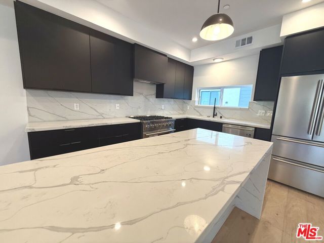 New construction modern residence in prime Highland Park offering 3 bedrooms, 3.5 bathrooms, and approximately 1,900 sq. ft. of light-filled living space. Open-concept floor plan features a designer kitchen with waterfall quartz countertops, custom cabinetry, matte black fixtures, and premium built-in appliances, flowing seamlessly into the living and dining areas. Wide-plank white oak flooring and modern finishes throughout. All bedrooms include en-suite bathrooms, ideal for flexible living or guests. Enjoy three private balconies plus an expansive ~670 sq. ft. rooftop deck with sweeping city and hillside views, perfect for entertaining. Additional features include a private two-car attached garage, in-unit laundry hookups, and energy-efficient systems. Conveniently located near York Blvd and Figueroa St dining, cafes, shops, and nightlife with easy access to Pasadena, Downtown LA, and Hollywood.