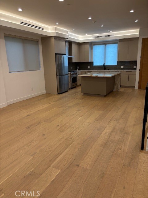 Gorgeous and stunning 2023 built small lot single family home south of the boulevard on one of Sherman Oaks prettiest treelined streets. Extremely private as this home sits in the rear of a drive as one of four gated homes. Featuring 0ver 2100 sqft feet pf living area with an amazing bonus roof top deck with gorgeous views. The three bedrooms have their own private resort styled baths. The fabulous gourmet kitchen is highlighted by an oversized island and complete with Dacor appliances, including four burner gas range, dishwasher, range hood, microwave, and refrigerator/freezer. There are impeccable quartz counters, glass tile backsplash, stainless farmer's sink, and self closing cabinets and drawers. There is a great entertainer's level with plenty of natural light with oversized windows and slider doors. There is a private full sized stackable washer/dryer closet in the kitchen included. Nice high ceilings. Enjoy the impeccable wide plank sold wood floors throughout the home. Low voltage recessed lighting throughout as well. There is a cute small private patio and yard. Amazing oversized roof top deck! The two full sized side-by-side car is direct access and has EV hook up. Gate drive. Solar panels are up on the roof and operating. Level 3 Green home. Home is vacant and ready to go. Also; available for sale for $1,799,000. Fabulous location.