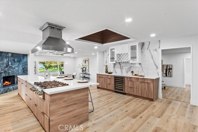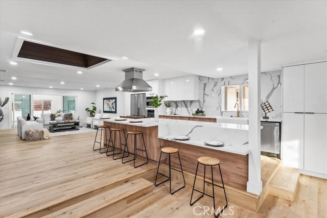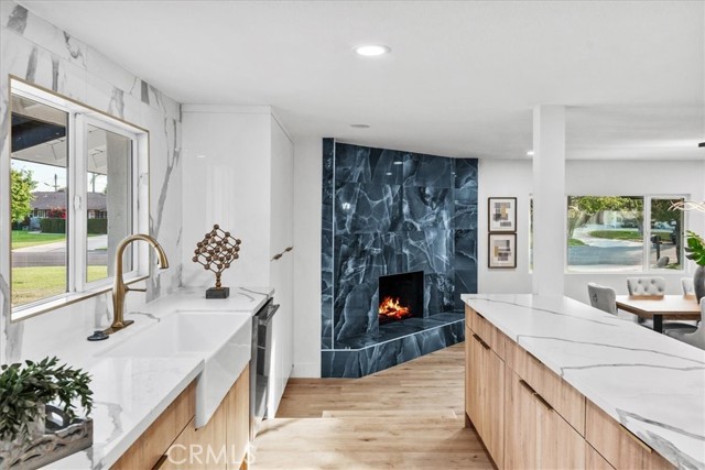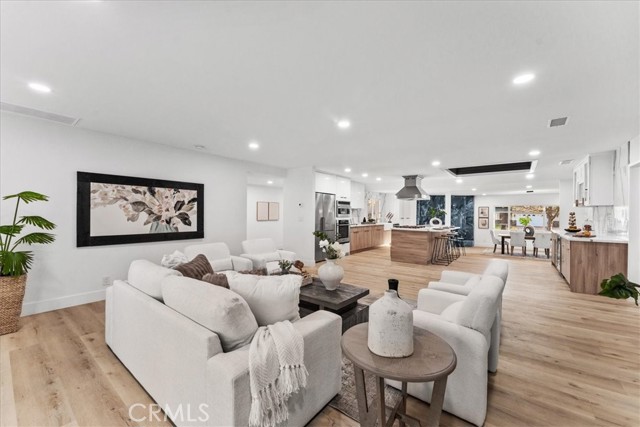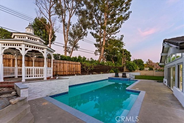 Welcome to your dream home in the highly sought-after foothills of North Tustin - where timeless design meets modern luxury. Nestled on a private cul-de-sac, this extensively reimagined residence offers approximately 3,786 sq. ft. of refined living space, featuring 5 bedrooms, 4.5 bathrooms, and an attached 2-car garage. From the moment you arrive, the home’s enhanced curb appeal sets the tone with refreshed landscaping, upgraded irrigation, and thoughtfully designed exterior lighting that creates a warm, inviting ambiance day and night. Inside, the home has been meticulously updated with fresh interior paint, upgraded baseboards, and new high-end luxury vinyl flooring, delivering both durability and elevated style throughout. At the heart of the home, the redesigned gourmet kitchen showcases a newly enhanced quartz island - reimagined for both functionality and entertaining - paired with brand-new high-end appliances, abundant storage, and seamless flow into the spacious dining area and expansive family room, anchored by a stunning quartz-clad gas fireplace. The adjacent sunroom provides a bright, tiled retreat with panoramic views of the backyard oasis, blending indoor-outdoor living effortlessly. Designed for flexibility and comfort, the home includes private guest quarters with a separate living room, fireplace, bedroom, and full bathroom - ideal for multigenerational living or extended stays - while the opposite wing hosts three additional bedrooms, two bathrooms, and a luxurious primary suite with a spacious walk-in closet and a spa-inspired bathroom featuring dual vanities and an oversized walk-in shower with dual showerheads. Step outside to your fully revitalized backyard sanctuary, complete with a newly resurfaced pool with updated tile and newer equipment, lush lawn, elegant hardscaping, ambient lighting, and a charming gazebo, plus a convenient poolside half bath for effortless entertaining. Additional upgrades include a fully serviced and upgraded HVAC system, new pool equipment, refinished landscaping with brand-new uplighting, new shower glass enclosures throughout, and an epoxy-finished garage floor - ensuring the home is as functional as it is beautiful. Ideally located near scenic hiking trails, parks, premier shopping, dining, and award-winning schools, this turnkey North Tustin gem offers the perfect blend of luxury, comfort, and convenience - schedule your private showing today.