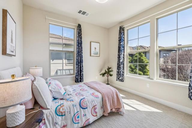 Stunning 12-year-new contemporary end-unit townhome in a quiet court location overlooking greenbelt. Best duet setup with only one neighboring home on the lot in sought after Bay Meadows community! Extremely sunny & bright with ideal orientation and numerous large windows bringing in abundant natural light. Elegant modern features flow perfectly through the versatile floor plan with open kitchen/dining/living room design and 1BR&1 full BA on the second floor. Primary bedroom suite and the third bedroom with full bathroom on the top floor. Primary and 2nd floor bedroom with own sunny balcony. Remodeled kitchen with granite countertops, stainless steel appliances including gas range. Large primary suite with walk-in closet, balcony and luxurious bathroom with double sinks and gigantic shower. Elegant engineered hardwood floor, trendy carpet, dual pane windows, and recessed lights throughout. Attached 2-car garage, in-unit laundry, and large storage under stairs. Built with high-tech and plugged-in features. Truly a masterpiece! Enjoy all the fabulous Bay Meadows Community has to offer with trendy shops and restaurants, parks, organic garden, and live music. Walk to Whole Foods & Cal Train! Easy access to HWY 92&101.
