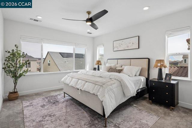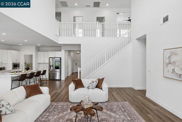 Welcome to this stunning home, thoughtfully designed with exceptional attention to detail and elevated finishes throughout. Spanning approximately 2,717 square feet, this residence offers 4 spacious bedrooms, 3.5 bathrooms, a versatile loft, and a dedicated office, creating the perfect balance of comfort and functionality. At the heart of the home is a beautifully designed kitchen that seamlessly connects to the main living spaces, ideal for both everyday living and entertaining. The open layout is complemented by abundant natural light, refined finishes, and a warm, inviting atmosphere. The indoor-outdoor living experience is truly exceptional, featuring a fully finished backyard with a covered California room, perfect for relaxing, hosting gatherings, or enjoying time with family and friends. This home also offers modern conveniences and thoughtful touches throughout, making it move-in ready and effortlessly livable. Conveniently situated near I-580 and the ACE Train Station, this home offers an easy commute while still being part of a peaceful and well-connected community. This is a rare opportunity to own a beautiful home that combines style, comfort, style, and location. Hunter Douglas shades, ~20K. 50K. Fully paid Solar panels ~20K, & a backyard with designer tiles!