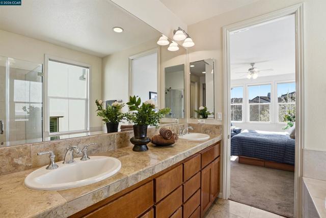 Welcome to your Hiddenbrooke dream home. Where space, views, and lifestyle come together beautifully. Situated on a quiet corner in the highly sought-after Summit neighborhood, this spacious 4-bedroom, 3-bath home is surrounded by the Arnold Palmer Signature golf course, offering stunning rolling hill views from most of the windows windows. Framed by scenic parks, walking trails, and the exclusive amenities of Hiddenbrooke—including a community center, on-site dining, and a guard-gated entrance. This setting offers a truly elevated lifestyle. Designed with flexibility in mind, the layout is ideal for large families or multi-generational living. The main level features a private primary suite with an oversized walk-in closet and spa-like bath with dual vanities, soaking tub, and separate shower, along with a second bedroom and full bath perfect for guests or a home office. The kitchen offers generous counter space, abundant cabinetry, an island, plus an electric oven and gas cooktop. It opens to a cozy living room with a gas fireplace and dining area leading to a covered balcony. Downstairs features a large family room, two bedrooms, a full bath, and a huge storage closet perfect for extended living. Laundry on both levels and a low-maintenance yard completes this home.