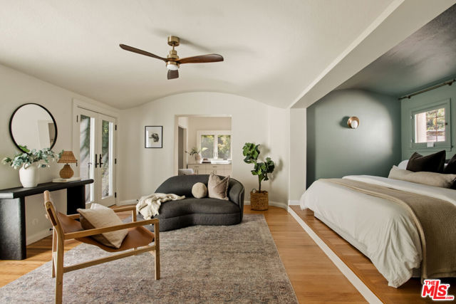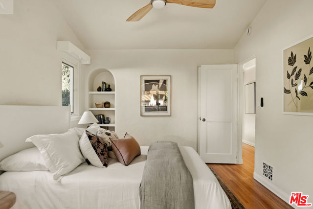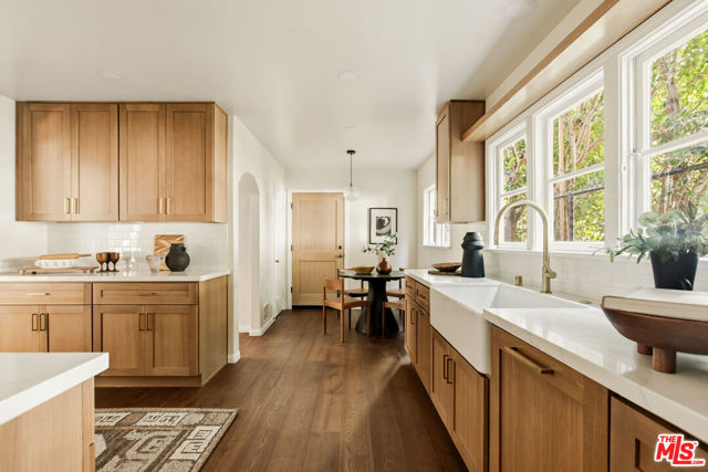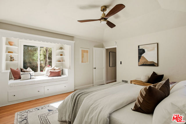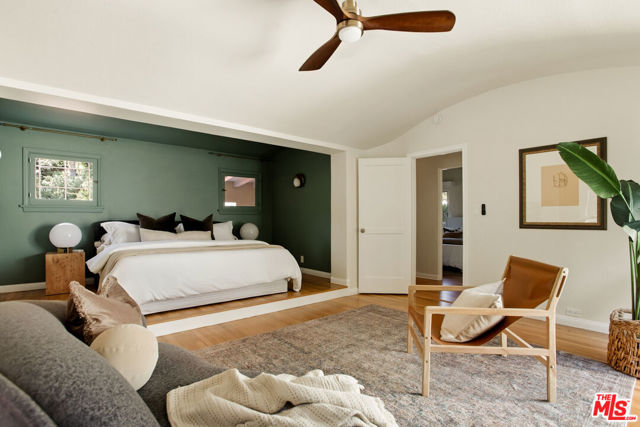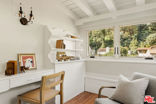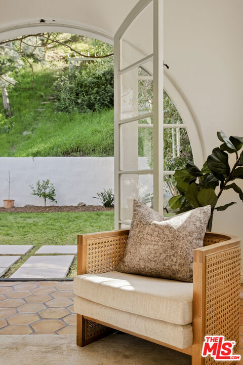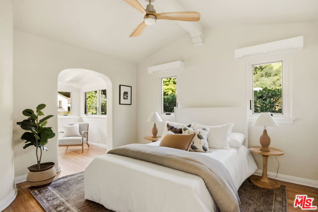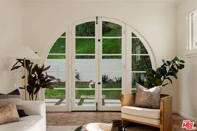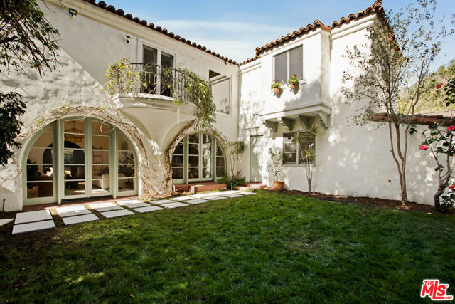 Located in the serene Beverly Crest enclave of Beverly Hills Post Office, this 1928 Spanish residence originally designed and built as the personal home of architect James Conway seamlessly blends timeless character with modern livability. Featuring four bedrooms and three newly remodeled bathrooms, the home offers expansive living spaces that honor its architectural heritage while catering to today's lifestyle. The dramatic step-down living room showcases vaulted king post truss ceilings, rich original details, and a striking arched, tile-accented fireplace. The newly updated chef's kitchen includes an 8-burner Wolf range, a double-door Sub-Zero refrigerator, ample storage, an eat-in dining area, and convenient access to both a side entrance and the attached two-car garage with laundry. Upstairs, three spacious bedrooms offer privacy and abundant natural light. The primary suite is a true retreat, featuring a private balcony, separate living and dressing areas, and a spa-inspired bath with dual vanities and a walk-in shower all thoughtfully designed to capture light from both the front and rear of the home. Just minutes from Coldwater Canyon Park and Franklin Canyon Park, and located within a highly regarded school district, this rare lease offering presents an exceptional opportunity to experience iconic Los Angeles architecture with comfort, privacy, and proximity to nature.
