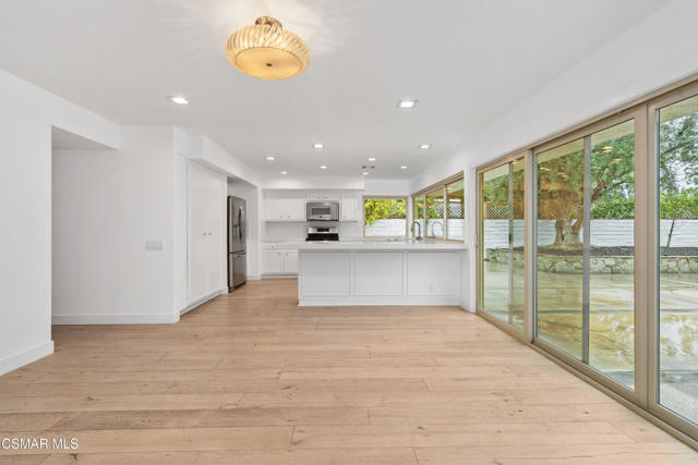 Beautifully renovated modern residence ideally located on a quiet cul-de-sac in Westlake Village's highly sought-after First Neighborhood. Designed for both everyday living and elevated entertaining, this light-filled home features soaring vaulted ceilings, an open-concept layout, and wide-plank wood flooring throughout.The upgraded kitchen showcases white cabinetry, granite countertops, and premium stainless steel appliances, including double ovens--seamlessly connecting to the main living areas.A privately positioned primary suite offers a true retreat, complete with a spa-inspired bathroom featuring marble flooring, dual vanities, and a frameless glass shower. Three additional bedrooms provide flexibility for family, guests, or a dedicated home office.Set on a rare 9,000+ sq ft lot, the property offers exceptional outdoor living with a spacious backyard and charming interior courtyard--ideal for entertaining, relaxing, or play.Additional features include a direct-access two-car garage with laundry, close proximity to the community pool and greenbelts, and access to one of Westlake Village's most established and desirable neighborhoods.Short-term lease available.