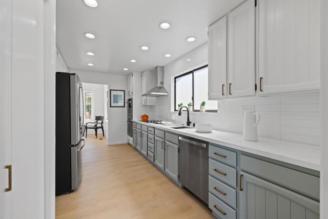 This beautiful home is 2,560 square feet on a generous lot size of 8,156 square feet. With 5 spacious bedrooms and 3full bathrooms, the residence offers ample space for relaxation and comfort. This home is designed with high ceilings that add to the grandeur and openness of the floor plan. A large kitchen fitted with stainless steel appliances serves as the heart of this home, providing an ideal setting for preparing meals or entertaining guests. There is a room off the kitchen that would make a lovely breakfast nook and a huge bonus pantry with a sink. The living room features large windows that not only let in abundant natural light but also provide breathtaking ocean views. From here, one can also admire the majestic mountain vistas that surround this property and the large, open back yard. A unique feature of this home is its huge garage which provides ample storage space. This could also serve as a workspace or hobby area depending on your needs. The property has been fully remodeled, ensuring that it meets modern standards of style and comfort. An additional benefit is the potential lower level with a kitchenette that could be used as an in-law suite or even as a source of rental income. This bonus feature adds versatility to this already impressive property.