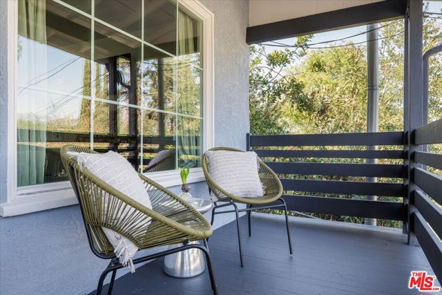 Perched above the street in a verdant pocket of Eagle Rock, and with a welcoming approach, this elevated bungalow offers warmth and personality. A wide staircase leads to an expansive front deck ideal for morning coffee or sunset lounging framed by mature landscaping and layered views. Light-filled and comfortable, the living room blends character with ease, anchored by a colorful mosaic-tiled fireplace as a delightful focal point. The dining area flows seamlessly into an open kitchen featuring concrete countertops, stainless steel appliances, and an artful tile backsplash a stylish yet highly functional heart of the home. The primary bedroom offers a luxe attached bath with dual vanities and a walk-in shower. A versatile and spacious second bedroom easily serves as an office and/or guest room. The hall bath includes a second shower and a classic clawfoot tub, blending vintage character with modern comfort.Beyond the home, a generously sized backyard unfolds as a rare and versatile canvas room to garden, entertain, create, or simply take in the views of the San Gabriel Mountains. A detached garage adds flexibility for parking, storage, or potential creative use. This charming home offers distinctive style, comfort, and a coveted Northeast LA lifestyle.
