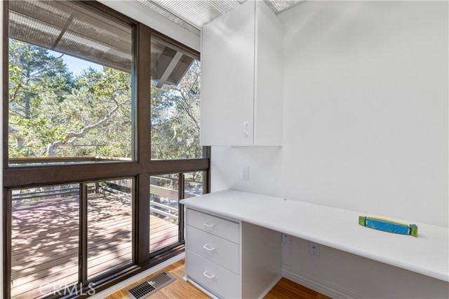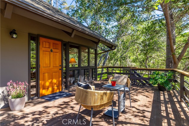 Escape to Your Artistic Coastal Treehouse! Tucked among the trees in the sought-after Cambria Pines by the Sea, this custom-built home offers a truly special coastal retreat—perfect as a serene second home or full-time escape. Filled with natural light, the home showcases beautiful wood and glass throughout, blending seamlessly with its peaceful surroundings. This inviting residence features 2 bedrooms, 2 bathrooms, plus a dedicated office and loft spaces, offering flexibility for guests, work, or relaxation. Soaring open-beam wood ceilings, and a charming window seat create a warm, airy atmosphere, with tranquil views of the neighboring open lot. The remodeled kitchen comes complete with appliances, while recent updates—including low-VOC interior paint, new carpet, with the laminate wood flooring—add comfort and style. The upstairs primary suite includes a walk-in closet and adjacent bath, while the second bedroom features its own bonus sleeping loft. Built-in cabinetry enhances the loft area, and indoor laundry with washer and dryer is included for convenience. Step outside to enjoy a private back deck and patio, along with a fenced yard filled with native landscaping. The spacious front deck is perfect for entertaining or simply unwinding among the trees and local wildlife. Additional highlights include a newer roof (2015), Tesla charger near the carport, and extra driveway parking for guests. Situated on a paved street in sunny Lodge Hill, the home also features a landscaped front yard and thoughtfully maintained grounds. Ideally located near the ocean, this home offers easy access to Moonstone Beach, Hearst Castle, local wineries, and all that scenic San Luis Obispo County has to offer. Your coastal sanctuary awaits—come experience the charm of Cambria living.