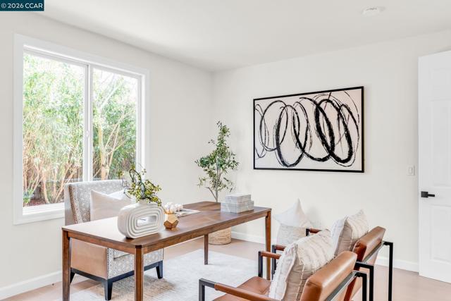 Beautifully appointed Toll Brothers home in the desirable The Oaks community, set against scenic open space and rolling hills with a prime westside location near shopping and commuter access. A grand two-story entry with wrought iron staircase and designer tile flooring opens to formal living and dining rooms featuring hardwood floors and detailed crown molding. The gourmet kitchen offers quartz countertops, a large island with bar seating, stainless steel appliances, double ovens, gas cooktop, and a sunny eat-in area with backyard access, and gorgeous 24 x 48 tile flooring. The spacious family room showcases a cozy fireplace and stunning views of the pool and hills. A spacious double door entry main-level office with niche or optional 5th bedroom provides flexible living. Upstairs, the luxurious primary suite features a sitting area with fireplace and a spa-inspired bath with jetted tub, oversized shower, quartz counter tops vanities, and walk-in closet. Secondary bedrooms include a Jack-and-Jill bath plus an additional full bath. Recent upgrades include new carpet, refinished hardwood floors, updated & refreshed bathrooms, and solar. The resort-style backyard is designed for entertaining with a pool & spa, turf lawn, and a covered pergola with lighting and fans, w/ hill views.