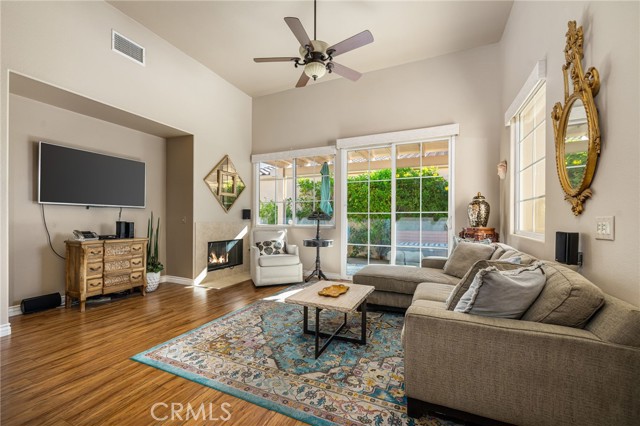 Welcome to Watercolors, one of La Quinta’s hidden gems, an inviting 55+ community designed for comfort, connection, and easy living. Situated on a quiet corner lot, this beautifully maintained single-story home offers approximately 1,337 SF of well-planned space, with 3 bedrooms and 2 bathrooms. The open layout feels bright and welcoming, with high ceilings, abundant natural light, and a cozy gas fireplace, perfect for relaxing evenings or hosting family and friends. The kitchen is both practical and attractive, featuring granite countertops, warm cabinetry, and a convenient breakfast counter with generous storage, ideal for everyday living without the hassle. The spacious primary suite provides a peaceful retreat, complete with a large walk-in closet and an en-suite bath with dual vanities and an easy-access walk-in shower. A second bedroom is perfect for guests, while the third offers flexibility as a home office, hobby room, or den. This home is thoughtfully equipped for comfort and convenience, including an attached 2-car garage, indoor laundry room with cabinetry, ceiling fans throughout, new remote controlled window coverings and ADA-height toilets for added ease. The upgraded HVAC system ensures year-round comfort, while the private side courtyard and covered patio create a perfect setting for quiet mornings or outdoor relaxation. Enjoy a low-maintenance lifestyle with HOA dues that include cable and internet, along with access to community amenities such as a pool, spa, and clubhouse. Watercolors also offers a welcoming social atmosphere, with community breakfasts, events, and seasonal gatherings that make it easy to connect with neighbors and feel right at home. Furnishings negotiable.
