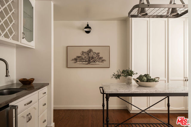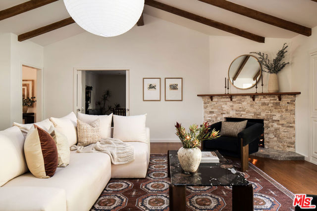 Set on an oversized 14,715 sq ft lot across from the historic grounds of Lakeside Golf Club, this single-story Traditional sits on one of the most sought-after streets in the San Fernando Valley, long valued for its privacy, scale, and quiet sense of prestige. The home unfolds through a series of generous, light-filled rooms that prioritize flow, comfort, and separation of space. Vaulted, wood-beamed ceilings and multiple fireplaces lend warmth and scale to the main living areas, while French doors throughout reinforce a seamless relationship between interior rooms and the outdoors. The layout allows for both gathering and retreat, with a distinct primary suite positioned separately from the secondary living spaces, offering privacy and a calm sense of removal. The kitchen has been designed with longevity and functionality in mind, featuring a Miele dishwasher, a Sub-Zero refrigerator, Bosch double ovens, a built-in coffee station, and a breakfast nook complemented by a wet bar and beverage refrigerator. Bathrooms have been updated with stone surfaces and pedestal tubs, maintaining a restrained material palette that respects the home's original character while providing modern comfort. Outside is where the property truly comes to life. Mature trees, refreshed landscaping, and winding garden paths create a private, park-like setting, anchored by a recently updated heated pool that's ideal for everyday use or entertaining. A separate office or gym with its own entrance adds flexibility for work or creative space, and a two-car attached garage provides everyday convenience. With its oversized lot, private outdoor oasis, and it's position along Valley Spring Lane, the property presents an opportunity to enjoy immediately while also offering meaningful potential for future expansion or reimagining allowing a new steward to build upon a timeless setting in one of Toluca Lake's most enduring residential pockets.