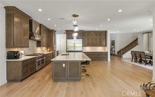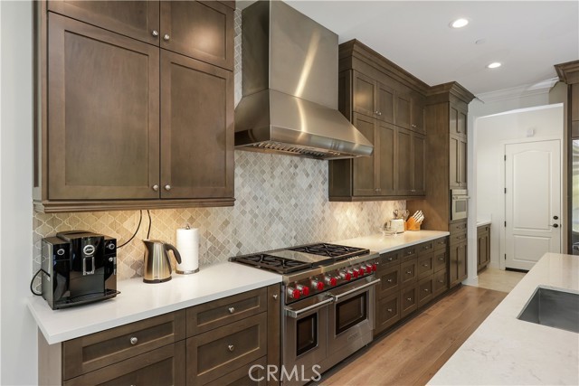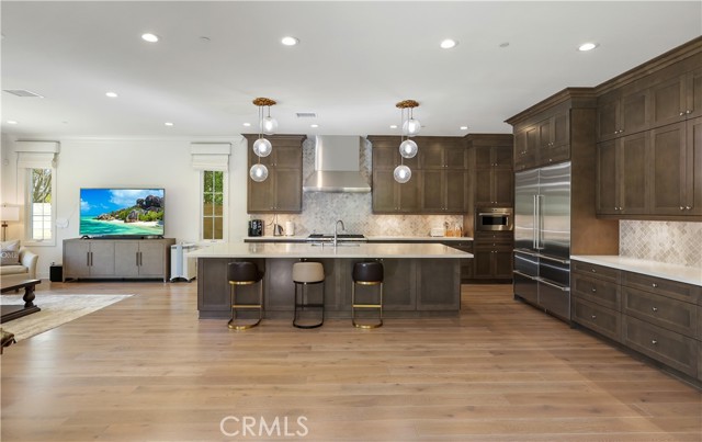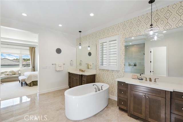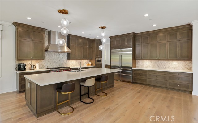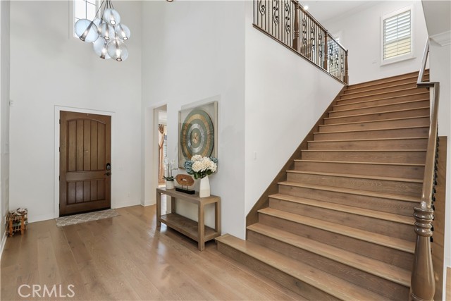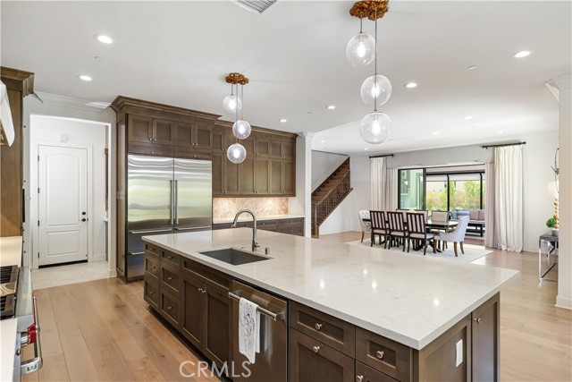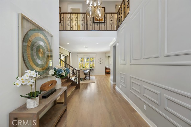 *GUARD-GATED*5BED*ENCLOSED PATIO*LOFT*PREP KITCHEN*Discover unparalleled elegance in this professionally designed, highly upgraded Toll Brothers MERIDIAN model, located in the exclusive 24-hour guard-gated Altair Irvine community. This stunning 5-bedroom, 5.5-bathroom residence blends modern luxury with timeless sophistication, showcasing meticulous attention to detail in every corner. As you step into the grand two-story foyer, you're greeted by exquisite wall paneling, elegant designer chandeliers, and premium flooring that set a luxurious tone. The open-concept layout flows effortlessly, enhanced by soaring ceilings on both the main level and upper floor, creating a bright, airy ambiance throughout. The heart of the home is a gourmet kitchen, complete with a 60” Sub-Zero refrigerator-freezer, a 6-burner Wolf range, a large center island, a 48-inch gas cooktop, double ovens, a microwave, a dishwasher, sleek stainless-steel finishes, a striking backsplash, and unique pendant lighting. A standout feature is the luxurious Prep Kitchen—a bespoke Toll Brothers addition—perfect for hosting and entertaining with ease and style. The first floor also offers a private guest suite with a full bath, a spacious ensuite office with an additional powder room, and an expanded California Room, currently used as a home gym or extra lounge, blending indoor-outdoor living effortlessly. Upstairs, the expansive master suite boasts a massive walk-in closet, dual vanities, a freestanding soaking tub, and a private retreat. Each secondary bedroom comes with its own ensuite bathroom, while a versatile loft provides additional space for relaxation or entertainment. The outdoor area is a low-maintenance, modern oasis with a spacious, well-designed patio ideal for hosting gatherings or relaxing with stylish patio furniture. Energy-efficient solar panels add sustainability to this sophisticated home.Altair’s resort-style amenities elevate the lifestyle, offering two luxurious clubhouses, zero-edge pools, spas, cabanas, tennis courts, parks, and scenic walking trails just steps away. Zoned for top-rated Irvine schools, including Portola High School and Cadence Park School, this home is ideally situated near Woodbury Town Center, Irvine Spectrum, Fashion Island, and major freeways (5, 405, 133, 241) for easy access to shopping, dining, beaches, and entertainment. This exceptional home is a rare gem—schedule a visit to experience its grandeur, style, and sophistication in person.