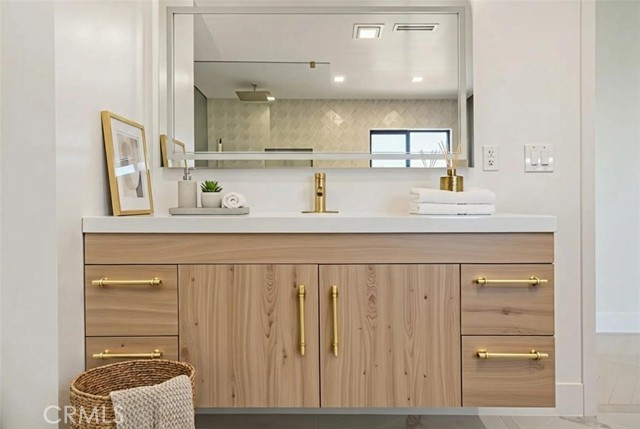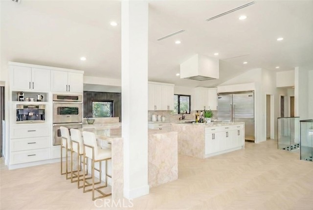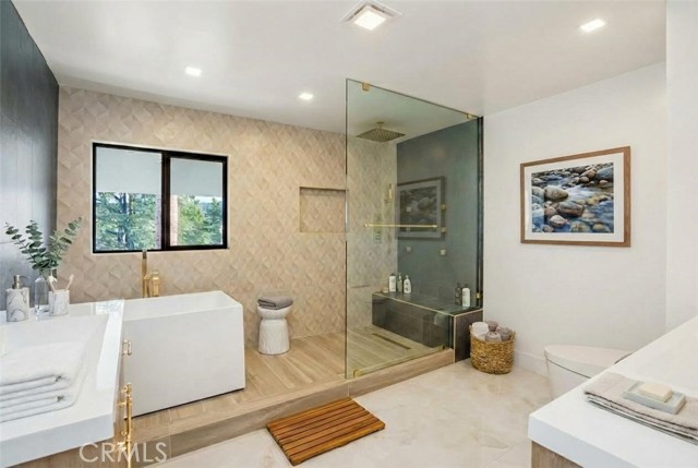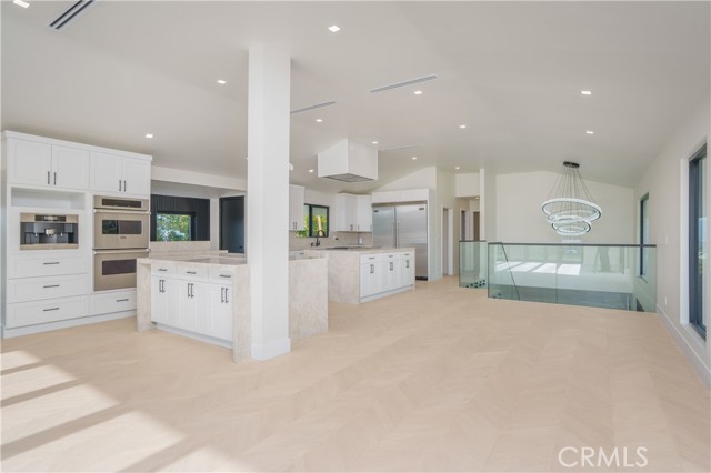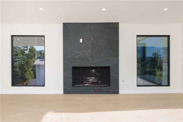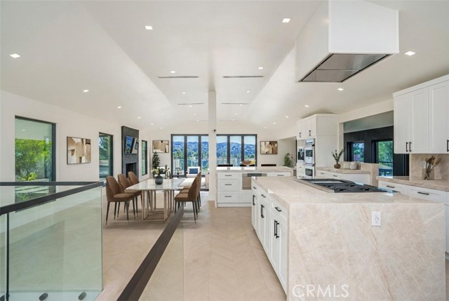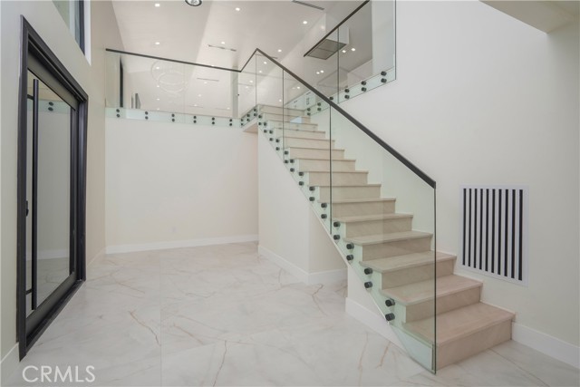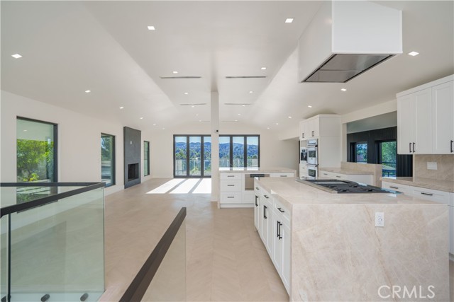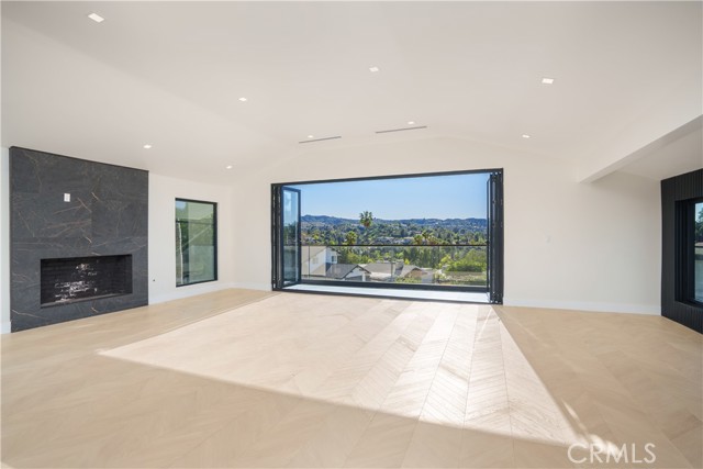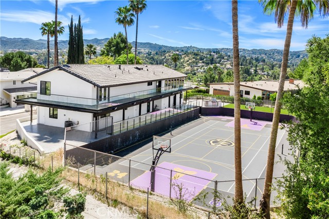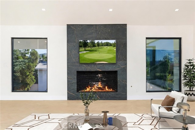A Custom Estate home fully reimagined 3,320 sqft, set on an oversized secured flat lot, offering exceptional all new finishes. Enter through a new oversized custom pivot glass door onto 36x36 Pianetto porcelain tile, leading into the foyer. The home has been completely reimagined from wall to floors and ceilings, featuring all new finishes throughout. A new custom glass staircase, connects the levels with elegance and safety. The main upstairs living level is the designed living room, dining area, and kitchen that is surrounded by incredible views. The bi-fold accordion door opens completely from the living room to the outdoor surrounded expansive balcony, creating an indoor-outdoor vibe under the open sky. This open-concept space is centered around a grand fireplace. New Herringbone-designed flooring are throughout the home, adding warmth and sophistication. All new led lighting thoughout. The all-new Master chef’s kitchen has installed Professional Viking appliances, an extra-wide style refrigerator, dual ovens, a built-in microwave, and a Miele coffee station. Soft-closing cabinetry with oversized drawers, a barn-style accent sink, and a walk-in pantry, all topped with quartz countertops. The primary suite is expansive, offering a sitting area with a fireplace wrapped in elegant quartz, and access to an outdoor balcony. The Primary bathroom is custom designed featuring dual vanities, a soaking tub, and a grand multi-jet rain shower. Luxurious tile finishes elevate the space, complemented by a smart toilet. A fully finished ex-large walk-in closet. Downstairs find 3 additional bedrooms newly upgraded, and a dedicated work-from-home office that includes direct access to the backyard— for fresh air and privacy walks. All five bathrooms have been thoughtfully designed as individual works of art, featuring new tile, high-end fixtures, and functional layouts.This custom remodel captures huge sky and valley views, along with a peek-a-boo golf course view, blending modern luxury with seamless indoor-outdoor living. The exterior showcases new smooth-finish farmhouse-style solid stucco, dual-pane black-framed windows, and custom glass railings wrapping the oversized balcony, enhancing both the views and expansive outdoor space. The planned grounds feature a new custom BBQ area with sweeping views and a newly installed Kobe Bryant-inspired multi-sport court, perfect for basketball, tennis, pickleball, or for hosting unforgettable backyard events. Welcome home.