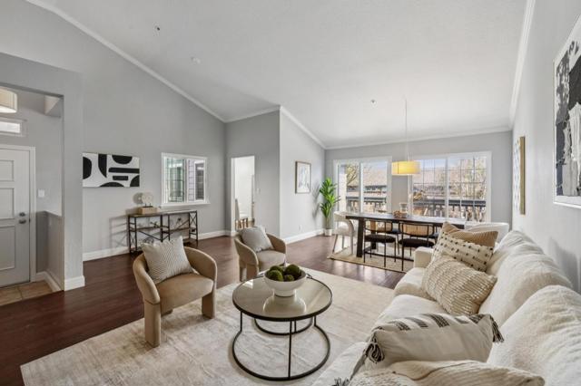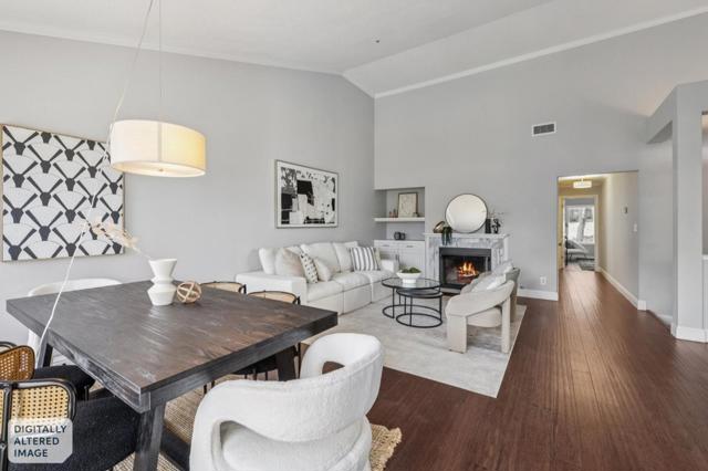 Beautifully updated residence offering exceptional volume, natural light, and versatility that lives far beyond its footprint. Soaring cathedral ceilings and an expansive living area create an immediate sense of openness, enhanced by oversized windows, rich wood flooring, and a warm gas fireplace. The layout flows seamlessly into a dedicated dining area with direct access to a private balcony, ideal for morning coffee or evening relaxation. The updated kitchen and remodeled bathrooms reflect thoughtful upgrades throughout, while triple pane windows and a whole house fan enhance comfort and efficiency. Both bedrooms are privately positioned at the rear of the home with no direct rear neighbors, offering a rare sense of privacy. The spacious primary suite features a walk in closet, additional storage, and a beautifully renovated bath with soaking tub and separate shower. A standout feature is the expansive lower level bonus area off the attached 2 car garage with additional storage space, offering flexibility for a potential third bedroom, office, media room, or guest space. A rare combination of space, privacy, and adaptable living in todays market.