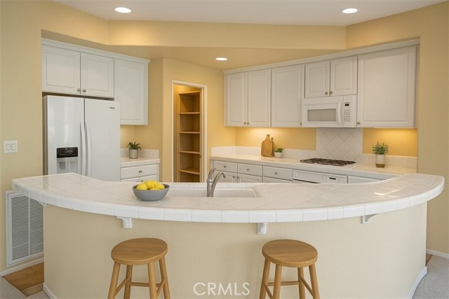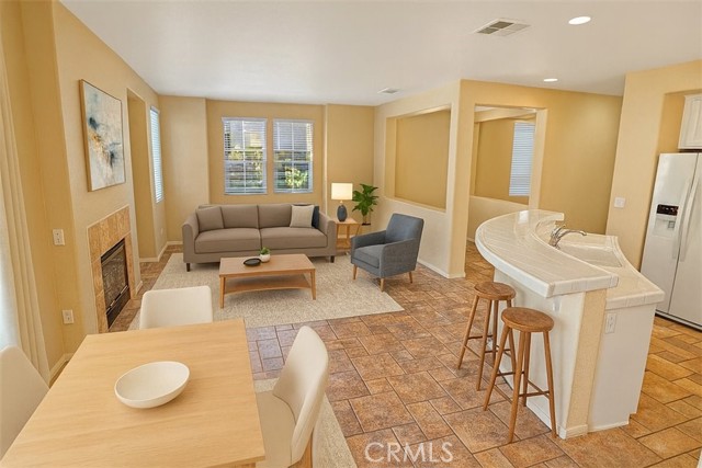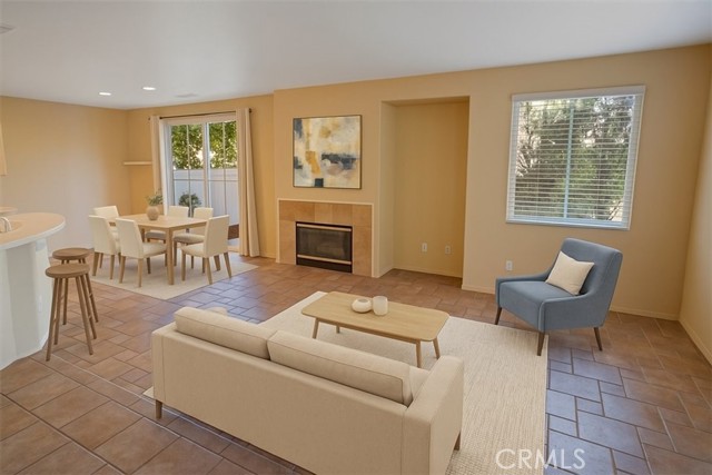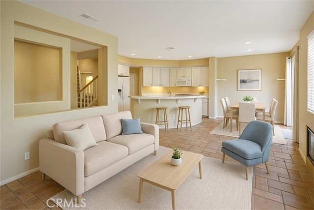 Valencia Cornerstone Town Home End Unit! No Mello Roos! 3 Bedroom + Loft area, with open floor plan! Eligible for FHA Spot Approval for low down payment financing. Call agent for details. Brand new carpet. Tile Flooring begins at Entry and continues throughout the first floor. Living Room has a cozy fireplace, and media niche. Dining Room with recessed lights has sliding glass doors to the patio and backyard. Kitchen with tile counters, cabinets with under cabinet lighting, gas cooktop, breakfast bar and walk-In pantry. Bedroom Two is located on the First Floor with a Full Guest Bathroom across the hall. Inside Laundry Room with storage cabinets. Upstairs Landing/Loft can be used so many ways. Primary Bedroom Suite with large walk-in closet. Primary Bathroom with dual sink vanity, walk-in shower, soaking tub and water closet. Bedroom Three with Full en-suite bathroom. Lushly landscaped backyard with wrap around patio. Attached two car garage. Newer A/C and FAU system. CORNERSTONE PERKS: Only 3 units per building; No Mello Roos; Lots of parking for guests, less density that most developments; 2 swimming pools, spas, BBQs, picnic area, playground,. Easy access to Santa Clarita paseo and trail system. Close to parks, shopping, restaurants and schools.