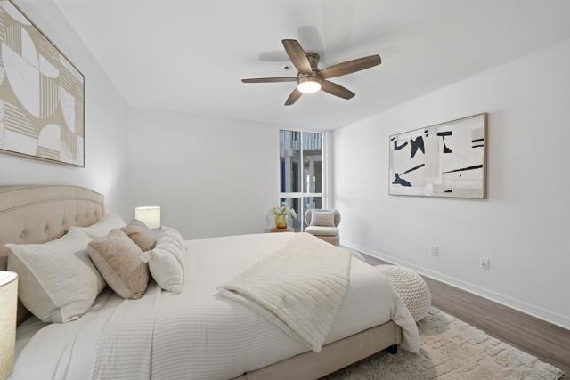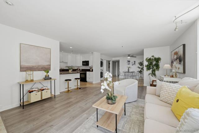 Coastal living in prime Pacific Beach location! This beautifully updated condo is a stone’s throw from the tranquil shores of Sail Bay and the charm of Fanuel Park, with 2-bedrooms, 2-baths with in-unit laundry and 2 parking spaces inviting you into one of San Diego’s most coveted coastal lifestyles. Imagine morning strolls along the water, paddleboarding at sunset, and endless days where the beach is quite literally seconds from your front door! Bathed in natural light from stunning newer floor-to-ceiling windows, this spacious 1,200+ sq ft home offers an open-concept layout designed for both comfort and connection. The living space flows effortlessly to a private patio perfect for soaking in coastal breezes while a cozy fireplace anchors the room with warmth and charm. Newer luxury vinyl plank flooring adds a modern, beach-inspired touch. Located within the gated, pet-friendly Gresham La Palma community thoughtfully tucked away to create a quiet retreat from the vibrant energy of Pacific Beach. Residents enjoy resort-style amenities including a pool, spa, expansive patio areas, and convenient bike storage ideal for embracing the active coastal lifestyle. Elevator access, EV charging, and two secure tandem parking spaces in the underground garage provide ease and practicality in a location where parking is a true luxury. Set just moments from the bay, beach, and PB boardwalk, you’ll have effortless access to some of San Diego’s best dining, shopping, and local hotspots all while enjoying your own serene space. This is more than a home, it’s a lifestyle!