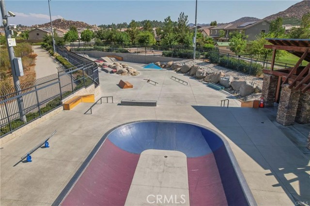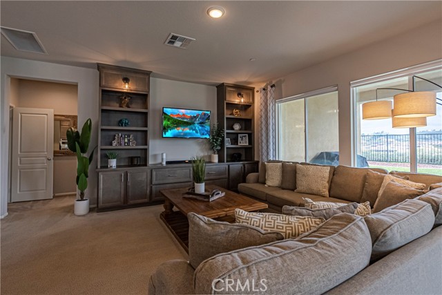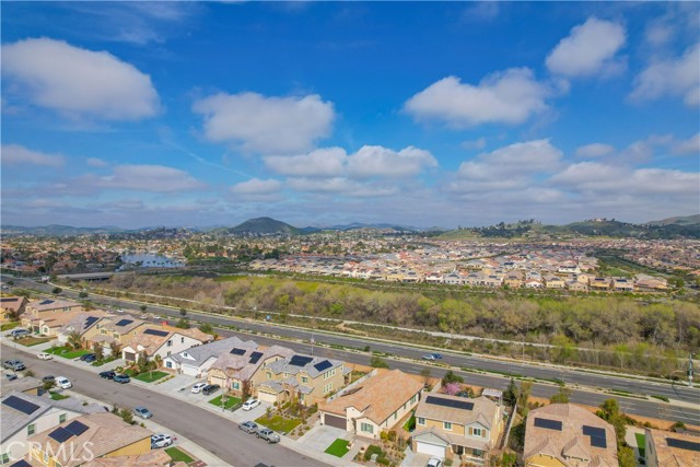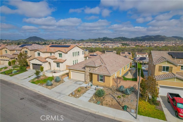 VIEWS...VIEWS.....& MORE VIEWS!!! | SINGLE STORY | CUSTOM BUILT-INS | SPACIOUS GREAT ROOM | SINGLE LOADED STREET | 3 BED + OFFICE | PRIME LOCATION!! - Welcome to this beautifully spacious single story home with VIEWS that will be hard to match!! From the moment you arrive, the inviting curb appeal with custom hardscape sets the tone for a home that effortlessly blends comfort and style. Located on a single loaded street with more incredible views out front; walking trails and a lush park await your enjoyment right across the street. Inside you'll experience an expansive 2,164 square-foot layout featuring abundant natural light and a gorgeous great-room that so many love. The kitchen serves as the heart of the home including a massive granite island with counter seating, stunning floor to ceiling cabinetry, ample counter space, lots of storage, stainless steel appliances and a huge walk-in pantry. This all flows seamlessly into the main living area with a dazzling custom built-in entertainment center with designer lighting. The home offers 3 generously sized bedrooms and an additional office space with a beautiful custom barn door and custom built-in murphy bed/shelving unit. The primary suite is designed as a private retreat with gorgeous spa like bath and more tantalizing views of the mountains beyond and city lights below. Step outside to a versatile backyard space perfectly suited for both peaceful relaxation and entertaining family & friends. Enjoy the shade of a well-placed California room, large concrete patio, extensive hardscape, spacious side yard with custom pavers and turfed play area. Situated in one of most sought-after communities in this whole valley, Audie Murphy offers endless fun and recreation with several parks, playgrounds, sports park, skate park, basketball courts, and tennis courts. The Ranch House community clubhouse pool area is a prized feature for Audie Murphy and a complete other community pool area just right down the dedicated trail right out the front door of this amazing residence. Enjoy incredibly convenient access to top-rated local schools, access to be the 15 & 215 freeways, premier shopping and dining destinations at the well acclaimed Menifee Town Center. With its blend of suburban serenity and everyday convenience, this property is a premier destination for those seeking a vibrant atmosphere to call home.
