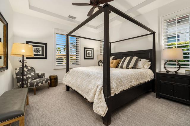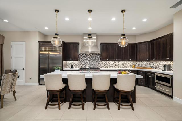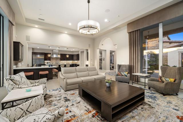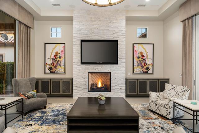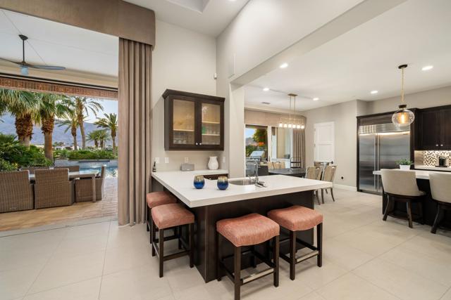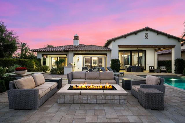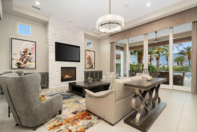 Luxury at its finest. This exceptional 4-bedroom, 4.5-bathroom residence spanning approximately 4,345 square feet offers breathtaking, unobstructed views of the Santa Rosa Mountains from nearly every room. Perfectly positioned on a private lot with no adjacent neighbor, the home delivers wide-open, expansive vistas and ultimate tranquility.This contemporary Coralstone floor plan is designed for seamless indoor-outdoor living, highlighted by dramatic 12-foot electric sliding glass doors that disappear into the walls--effortlessly blending the interior with the outdoor entertaining spaces.The resort-style backyard is an entertainer's dream, featuring an oversized pool, spa, fire-pit, and built-in BBQ all set against the stunning mountain backdrop. The chef's kitchen is equipped with quartz countertops and professional-grade appliances, with a wet bar in the great room perfect for both everyday living and hosting.The spacious primary suite is a private retreat, complete with a fireplace, sitting area, and direct access to the backyard through sliding glass doors. Two additional en suite bedrooms are thoughtfully separated down the hall, providing comfort and privacy for family or guests.Guests will enjoy the detached two-room casita, accessed through a charming private courtyard. The casita features its own fireplace along with a built-in kitchenette including a sink, refrigerator, and microwave--ideal for extended stays.Residents enjoy HOA amenities including social membership privileges with access to the clubhouse restaurant, tennis courts, pickleball, and a resort-style pool and spa.An inspiring home that blends elegance, privacy, and unforgettable panoramic views--crafted to impress the most discerning buyer.This designer-appointed home showcases thoughtful upgrades throughout. Offered turnkey furnished.