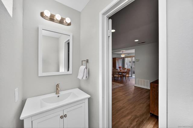 NEW ROOF!! Don't miss this clean, bright and move-in-ready, VA approved townhome!! A full 2-car garage connects to a spacious, private back patio creating a single family home vibe. Updated, new shower and tub upstairs and vaulted ceilings in the bedrooms make this townhome PERFECT for your first home or an investment property. Centrally located only 20 minutes from North Island base and a quick hop onto the 8 and 67 freeways. One of the best locations in the whole complex, your front yard is a huge, expansive green space, just right for pups, kids or simply hanging out on lawn chairs. Enjoy a swim in the pool or relaxing dip in the jacuzzi after a hard day - then watch the sun set from the balcony off the primary bedroom. You do NOT want to miss out on this one. No neighbors above or below - this unit is the best!