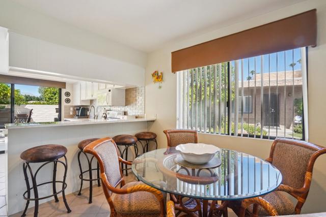 Welcome to Villas De Las Flores, where resort-style living meets the ultimate South Palm Springs lifestyle. This stylish 2-bedroom, 2-bath condo offers a rare opportunity to enjoy both comfort and low-maintenance living in one of the desert's most desirable locations. Thoughtfully updated, the residence features quartz counters, stainless steel appliances, and a light-filled interior designed for effortless comfort. Step outside to your own private patio and take in beautiful western mountain views while overlooking the sparkling community pool--perfect for morning coffee or evening relaxation. The seamless indoor-outdoor flow enhances the desert lifestyle, making entertaining or quiet retreat equally enjoyable. Villas De Las Flores residents enjoy an array of amenities, including 11 pools, 2 spas, 2 tennis courts, 8 pickleball courts, a fitness room, and a shared library. With low monthly HOA dues of $520, this community provides both value and convenience. HOA's include water, trash, and earthquake insurance. Fantastic South Palm Springs location places you just minutes from shopping, dining, golf, hiking trails, and the vibrant downtown scene. Best of all, this condo sits on fee simple land--you own the land, adding long-term value and peace of mind.