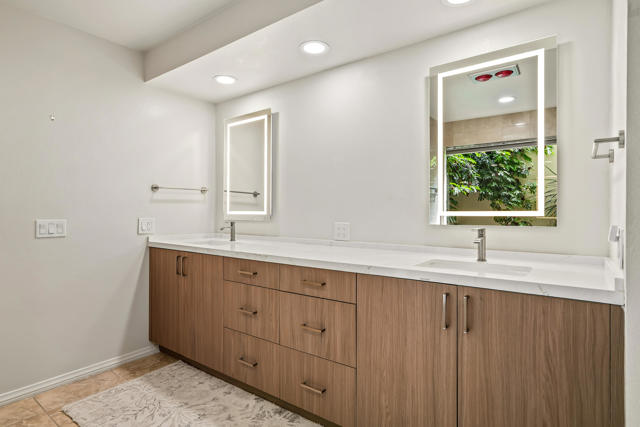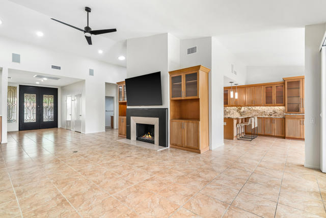 A Perfect Desert retreat in the heart of Indian Wells. Welcome into the charming front courtyard that is completely private and peaceful. Enter the home through lovely double cut-glass doors and you are invited into this wonderful remodeled Contemporary floor plan. The interior upgrades include an abundance of custom cabinetry, granite counter tops, stainless appliances, gas cooktop and double ovens. This great room floor plan offers 3 bedroom suites and over 2,500 sq. ft. No expense was spared while smoothing out some of the exterior walls as well as finishing the garage with epoxy floors, newer garage door and cabinets. Additionally, newly added LED lights, electrical plugs/switches and new hot air vents, filters and cleaning of the system. Primary bath has new cabinets and quartz counter top. Perfect!