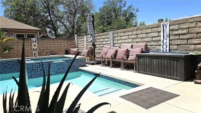 The front of the home is beautifully manicured and features impressive Roman-style pillars that immediately catch your eye. Welcome to this incredible hidden gem located in the heart of the Valley! As you step through the charming accented front door, you are instantly drawn to the open floor plan, which includes a formal living room complete with a custom fireplace. The formal dining area adds a touch of elegance, with large sliding doors that allow abundant natural light and provide a stunning view of the beautiful water features in the pool area. The perfectly designed kitchen features stainless steel appliances, granite countertops, and a cozy breakfast nook. It opens seamlessly into the family room and eating area, which boasts two additional sliding doors that grant you multiple access points to the fantastic backyard. A versatile office area downstairs can serve as a library or study, complete with a 3/4 bath. Upstairs, you will find three bedrooms and two bathrooms. The main suite is exceptionally spacious, featuring vaulted ceilings, mirrored closet doors, and an en-suite bathroom. The main bathroom has dual sinks and a luxurious Jacuzzi tub, offering a relaxing retreat after a long day at work. Adjacent to the master is a separate area that can be utilized as a home gym or yoga studio. Solar panels and battery.