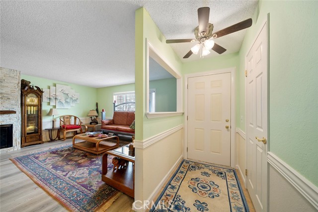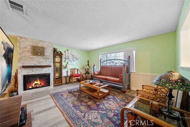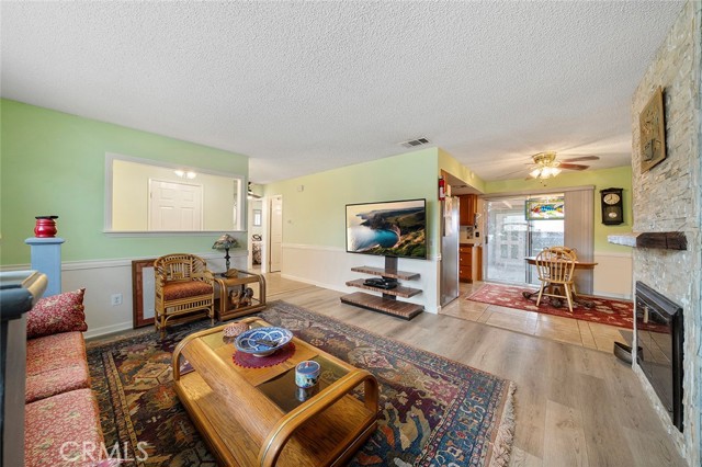 Charming Apple Valley retreat with clean curb appeal, circular driveway, and gated for privacy. Surrounded by mature trees and mountain views, this cozy litlle home offers a peaceful setting with a spacious living room and custom stone wood-burning fireplace. Features include laminate and tile flooring, a simple kitchen, panel doors, large bedrooms with ample closets, and an upgraded bathroom with granite countertops and tiled shower!