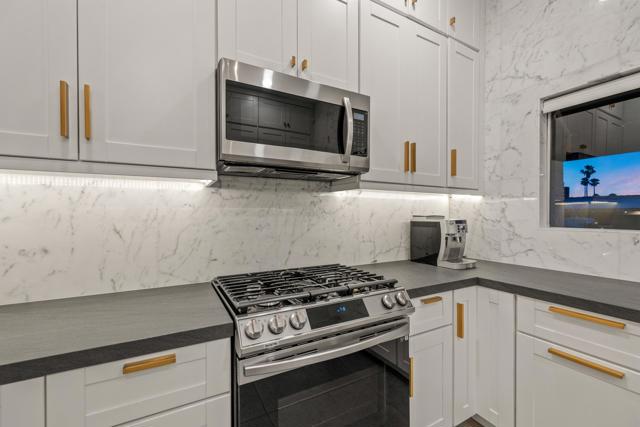 Set in the highly sought-after enclave of South Palm Desert, this exceptional residence captures the essence of elevated desert living. Framed by stunning mountain views and filled with natural light, the home offers a seamless blend of comfort and design with effortless indoor-outdoor flow. Thoughtfully enhanced with upgraded appliances and designer fixtures throughout, every detail reflects quality and modern sophistication. The property is equipped with solar, adding energy efficiency to its overall appeal. The well-designed layout includes two bedrooms plus a versatile flex room, ideal for a home office, den, or guest overflow. Expansive living spaces open to private outdoor areas perfect for entertaining or quiet relaxation, while gated side access provides RV parking--a rare and highly desirable feature. All just minutes from the renowned shopping and dining of El Paseo, this home offers the perfect balance of lifestyle, convenience, and value. Whether as a full-time residence or seasonal retreat, this is a rare opportunity to experience one of the desert's most desirable settings.