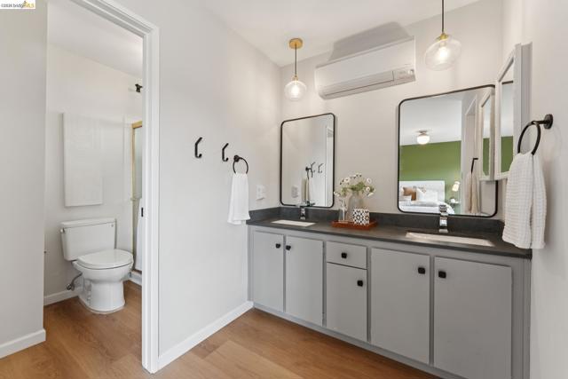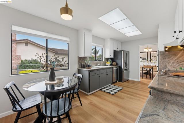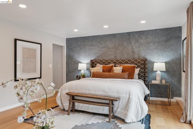 Welcome to 5200 Pinecrest Drive, a well-maintained tri-split-level home built in 1967, located in Oakland’s desirable Sequoyah neighborhood. Offering approximately 2,525 square feet of living space, this thoughtfully designed residence features 5 bedrooms and 3.5 bathrooms, with hardwood floors throughout and a versatile layout suited for a variety of living needs. The main level offers an eat-in kitchen equipped with stainless steel appliances and an electric cooktop, flowing seamlessly into the living and dining room areas. The lower level provides a spacious family room, ideal for additional living, recreation, or workspace plus an En-Suite with private entrance. The upper level includes four bedrooms, two bathrooms, and a linen closet, providing ample storage and functionality. A standout feature of the home is the presence of two en-suite bedrooms, including one with a separate entrance, offering flexibility for extended living arrangements, guest accommodations, additional privacy or potential rental income. Additional features include in-unit laundry, mini-split air conditioning, a heat pump system, tankless water heater, keyless entry, and a Tesla charger. The property sits on a gently elevated lot with a landscaped, drought-tolerant yard, irrigation & mature trees.