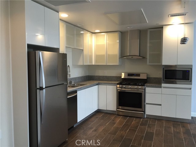 Top floor unit with 14' vaulted ceiling in a sun-filled living room. This quiet and beautiful 2 bedroom 2 bath unit overlooks the tranquil courtyard and Koi pond from the top floor. The complex built in 2015 offers a total of 3 elevators. Building has 24 hours CCTV camera system, digital control parcel lockers in the mailroom, tranquil Koi pond in a large podium courtyard on 2nd floor surrounded by manicured landscaping. Ample visitors parkings and EV charge stations at ground floor. Unit has bright and contemporary interior design with open floor plan and energy efficient appliances including tankless water heater, Kohler 1-piece low flow toilet, LG front loaded washer/dryer, and Milgard double-paned windows in all rooms. Wood-patterned ceramic tiled floor in living/kitchen/bathroom, Central A/C, and closet organizer installed. Close to DTLA and walking distance to the restaurants, super markets, Sprouts farmers market, theater, LA Fitness and lots of urban activities. The unit has 2 assigned parking spaces in the gated basement garage.