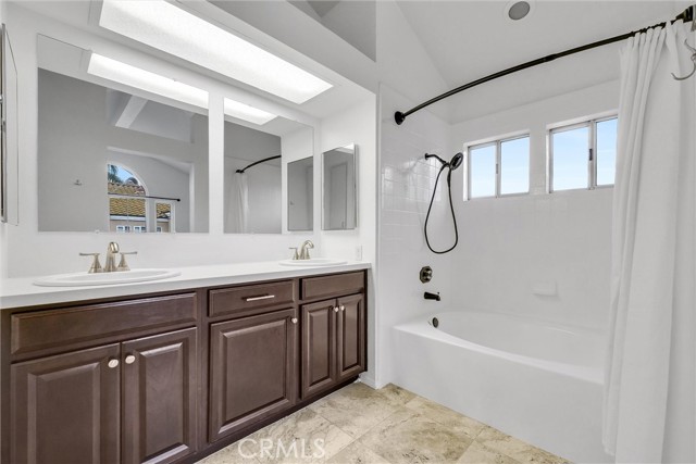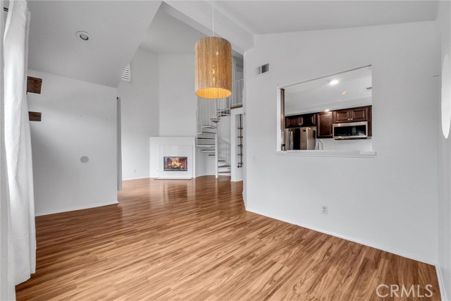 Welcome to Portofino Community! This Beautiful Move-in ready newly renovated home that is a corner unit and only shares one wall. This is a 1 bedroom with a private loft with walk in closet - it can be used as an 2nd bedroom. This home has high vaulted ceilings that gives this condo an open feel to it with lots of natural light. It includes a large master bedroom with master bath and walk-in closet. It also has a 1/2 bathroom for your guests on the main floor. The stairs lead you to a balcony for hanging out and enjoying the outdoors. This community is known to take leisurely walks around the lake and de-stress after a long day or cool off in the pool/spa. This Community is like living in a resort with a Private Lake for Fishing, Paddle Boats, Two Pools and Spa, TennisCourt, Basketball Court and Club House and more!! In a perfect location near shopping, dining, and the freeways this home is a definite must-see! Make an appointment for your private showing today!!