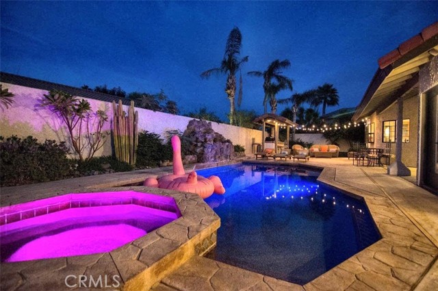 This beautifully furnished home offers 4 spacious bedrooms and 2.5 bathrooms across 2,721 square feet of comfortable desert living. Step outside to your own private paradise — a spectacular backyard retreat complete with a sparkling pool and relaxing jacuzzi, perfect for soaking up the gorgeous Coachella Valley sunshine.