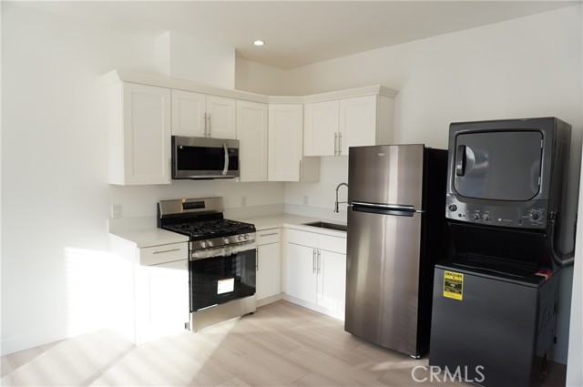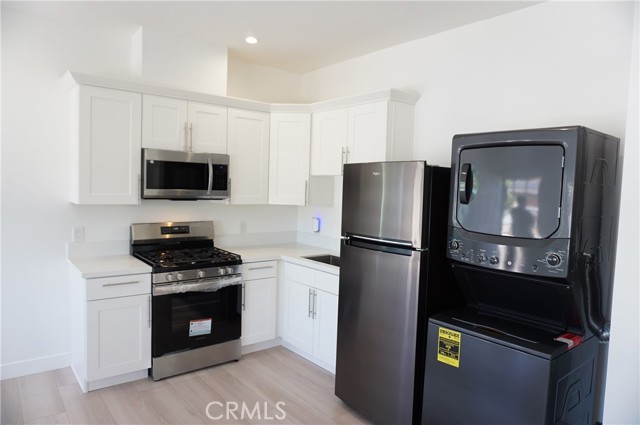 Studio ADU in the heart of Northridge! 400 sq. ft. of living space with an open floor plan featuring laminate floor, recessed lights throughout, mini-split AC/heater unit, and a tankless water heater. The kitchen includes white cabinets, quartz countertops, and brand-new appliances, including a gas stove, microwave, refrigerator, washer, and dryer. The bathroom is beautifully designed with tiled floors and a shower with a glass door. This ADU is situated at the front of the property with a spacious, fenced, private front yard with very low maintenance. Conveniently located near CSUN, shopping centers, Target, and major freeways, this ADU offers easy access to everything Northridge has to offer. Sorry, no pets. A must-see!