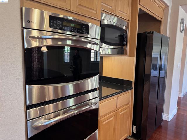 Beautifully maintained San Ramon home offering space, functionality, and scenic views. Featuring 5 bedrooms and 4.5 bathrooms, including a highly desirable downstairs suite. The home showcases elegant plantation shutters throughout and beautiful hardwood flooring downstairs, complemented by a thoughtfully designed floor plan with a formal living room with fireplace, a spacious formal dining room, and an expansive family room with a second fireplace. The gourmet kitchen is anchored by a large center island with stylish pendant lighting, complemented by a spacious walk-in pantry ideal for both daily living and entertaining. All bedrooms are generously sized, each with its own sink for added convenience. Additional highlights include a well-appointed laundry room with extensive counter space and a utility sink, plus abundant storage throughout the home. The primary suite offers dual vanities and a separate shower with a built-in seating area. Situated on a large lot with low-maintenance landscaping, the property enjoys serene hill views that enhance its peaceful setting. In addition to a long driveway, the home features an impressive 4-car garage, providing ample parking and storage. San Ramon top rated schools. Close to parks and trails.