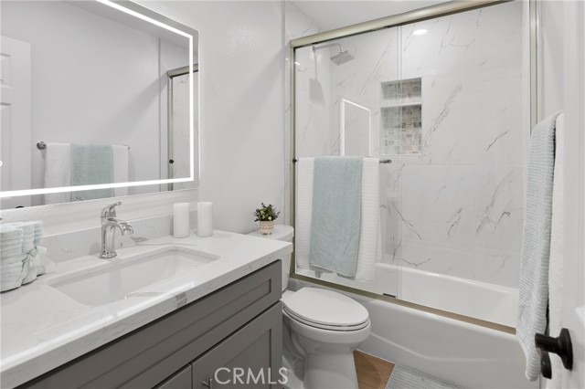Newly Remodeled Single Level home in Northwood, Irvine! Great location on a quiet inside street near parks. Entry opens to the living room with a step-down Conversation Pit and Fireplace. Gourmet kitchen with stainless steel dishwasher, sink, gas range, hood, new cabinets and quartz counters. Kitchen is open to the family room that overlooks the backyard. New designer laminate flooring throughout. Large master suite with remodeled bathroom. New vanities, fixtures and a luxurious walk in shower. Two secondary bedrooms with large closets. Hall bathroom is completely remodeled with a new vanity, glass shower door, toilet and fixtures. Indoor laundry area. Nicely landscaped front and back yard. Attend Award Winning Irvine Unified Schools: Northwood Elementary, Sierra Vista Middle & Northwood High. Close to the 5 freeway, Irvine Spectrum, Irvine Valley College, UCI, Kaiser and HOAG Medical Facilities.