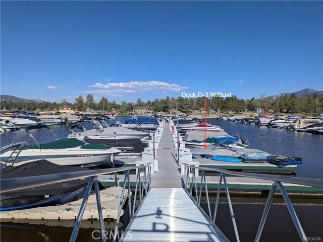 Discover an exceptional opportunity to own a fee simple, deeded 24-foot dock in the highly sought-after Pine Knot Marina ~ A members-only marina with private gated entry, just steps from The Village in Big Bear Lake ~ Dock D-3 offers everything you will need for an effortless lakefront experience ~ The second dock to your right after descending the gangplank to all the docks ~ No need to own a lakefront home when you can own your very own dock ~ Enjoy the convenience of electricity and water directly at your dock, along with access to private owners-only restrooms, a fish-cleaning station, and a secure dock box for added storage ~ This premier location features front-row seating to Big Bear’s spectacular Fourth of July fireworks and Pine Knot Marina provides 24-hour video surveillance, on-site management, and a fully stocked hardware store to meet all your boating needs ~ A repair shop is available for service and maintenance, and when it’s time to fuel up, you’ll appreciate the conveniently located fuel dock just moments away ~ All these amenities make this one of the most desirable marina’s in Big Bear ~ Whether you’re a seasoned boater or looking to elevate your lake lifestyle, this is your chance to experience Big Bear at its finest while owning a premium dock on Big Bear Lake! Seller's ski/wakebaord/wake surf boat is also available for purchase outside of escrow (2006 Correct Craft Super Air Nautique 226 Team Model).