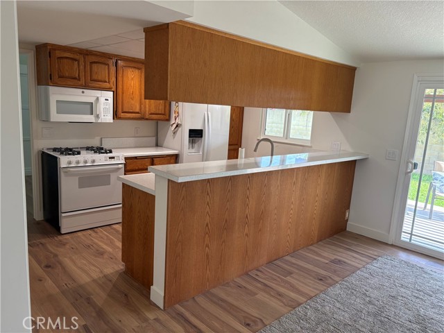 Great condition and location FOR LEASE on culdesac, walking distance to Trader Joe's. New flooring, new paint, new bathrooms, new toilets, new bathroom vanities, dual pane windows. New gas forced air heater. One bedroom is located adjacent kitchen and could be used as a Family Room or Office instead of a Bedroom. Super inviting front porch area immediately outside the LR bay window. Retractable veranda cover. Porch faces West, perfect for watching evening sunsets! Covered rear patio. Back yard has orange tree, lemon tree, and avocado tree. Kitchen with new built-in microwave oven, new refrigerator, and newer stove. College Park Elementary school is located 1/2 mile North at 2380 Notre Dame Rd (714-424-7960).