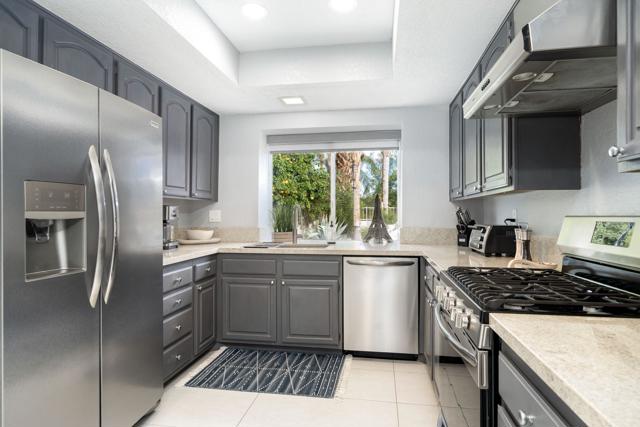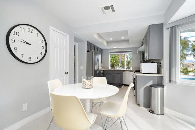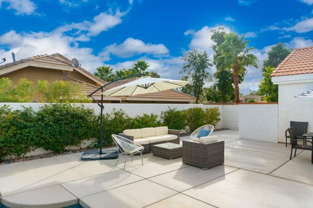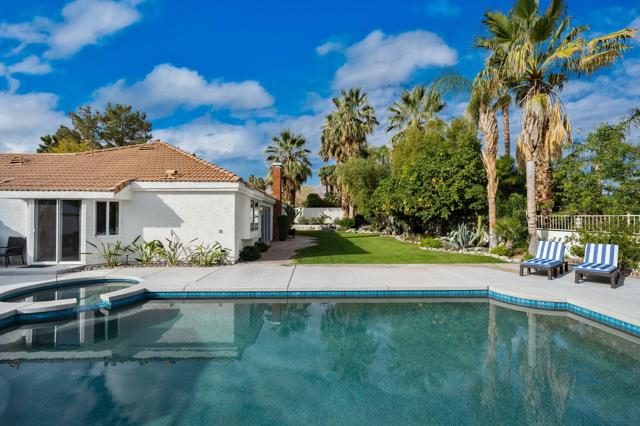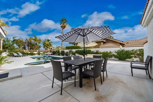 South Palm Desert Vibe doesn't get better than this! BEAUTIFULLY modern & comfortable Furnished turnkey VERY SPECIAL home with vaulted ceilings, 3BR, 4.25 BA, + Bonus TV Room & Wet Bar, & a STELLAR back yard, Pool/Spa, BBQ, mature landscaping & fruit trees. Great Canyon Cove area, expansive greenbelt and mountain views. This home has it all. Short distance (walkable for the fit) from the world famous El Paseo shops, The Living Desert, Westfield Mall, fine dining, golf, tennis, hiking trails & parks. Ideal for part-time vacationers and fun/sun seekers. Located in great neighborhood of stately homes. Sorry - no pets. Next available May, $4500, June-Aug $4200, Sept $4500, $Oct $5500. Not available November & Dec 2026, AVAILABLE Jan-April 2027 at $9300.