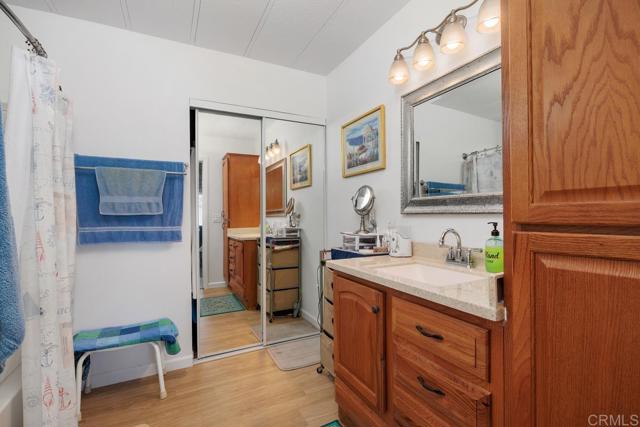 A pampered home is waiting for you! This adorable upgraded home in Palomar East is Move-in Ready! NEWER is the key word here, including but not limited to exterior paint, house and shed, new roof, flooring. Front, back stairs, railings and decking have been redone. Drywall and paint interior, upgraded kitchen with new cabinets and granite counters. upgraded bathrooms, replaced plug covers and switches, ceiling fans, dual pane windows. Patio areas landscaped, rubber pavers, and some turf. Great for taking in the great coastal weather and breezes. Huge shed with new roof for storage. Volume beamed ceilings in living room, airy and bright with views to clubhouse and local mountains. Steps away from the clubhouse, with ample guest parking. If you are looking for a home to just move in and enjoy, this is it. The clubhouse event calendar is always full, something for everyone. Enjoy the salt water pool, complete with jacuzzi. Tennis Courts, gym, Pickle Ball, and so close to Lake San Marcos, restaurants and shopping. This charming 2 bedroom 2 bath home has it all, and so neatly put together, a must see!