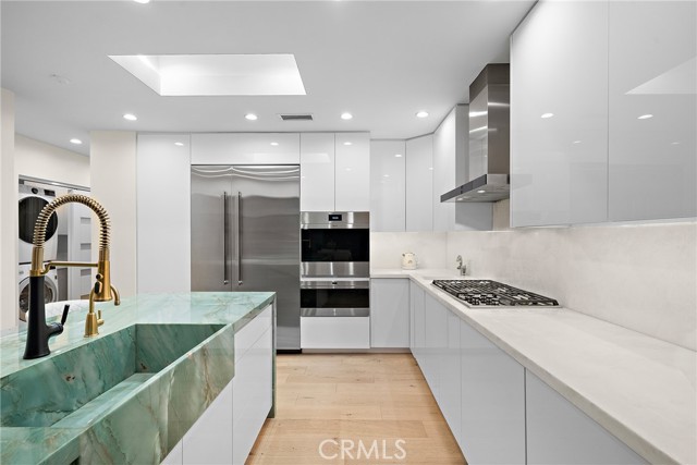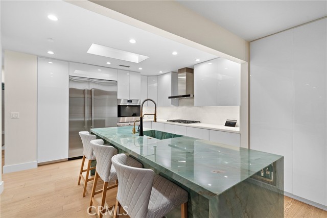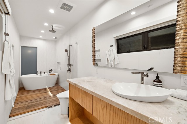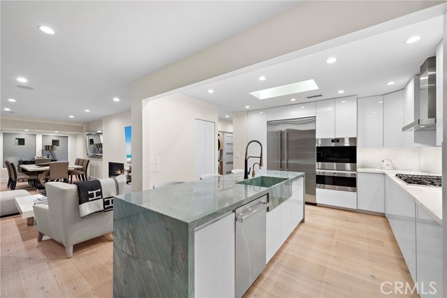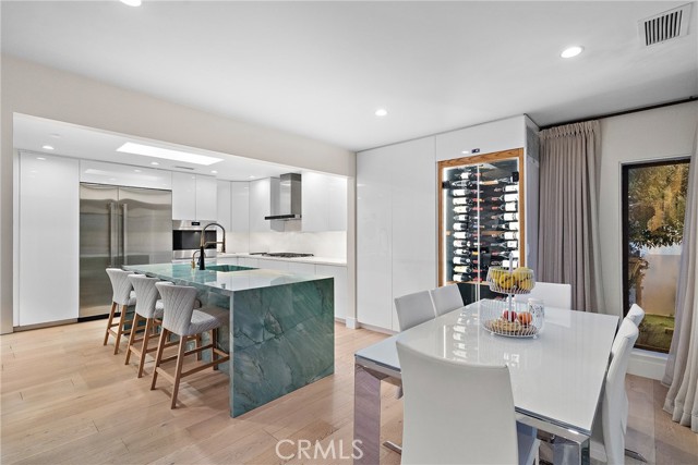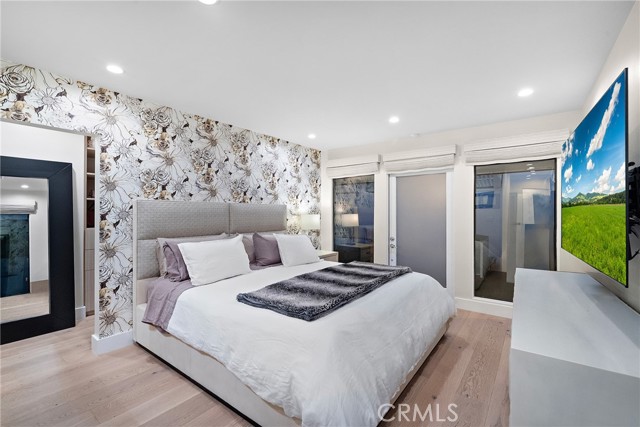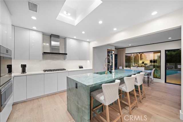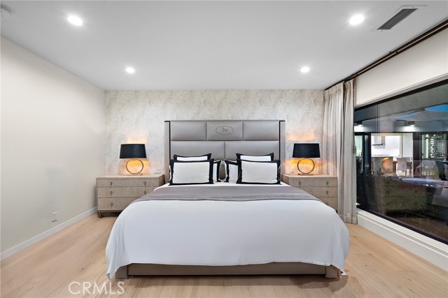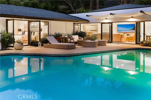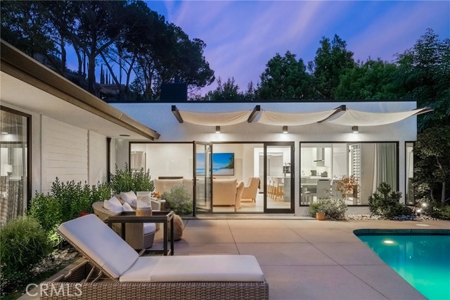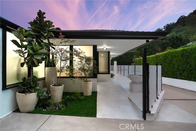 Discover this refreshing Mid-Century modern retreat, nestled privately in the lower Coldwater Canyon pocket of Beverly Hills 90210 — a peaceful escape that feels wonderfully removed from the everyday, yet just minutes from the energy of the city. Completely reimagined in 2022, this single-story residence invites through a main entrance experience that creates an immediate sense of calm and welcome. Inside, expansive walls of glass gently dissolve the boundary between indoors and out, framing peaceful views of the sparkling pool, resort-style backyard, and majestic hillside greenery beyond. The setting is perfect for relaxed mornings, quiet afternoons, or effortless evening gatherings bathed in soft California light. The thoughtfully designed floor plan moves with natural ease: a living room anchored by a sleek modern fireplace, a bright family room, and a dining area that connects seamlessly into a show-stopping kitchen. The 2022 remodel introduces warm authentic White Oak hardwood flooring throughout, custom cabinetry, Wolf appliances, elegant marble and granite counters, and a floor-to-ceiling built-in modern wine cabinet — crafting a space that feels both refined and deeply livable. Three bedroom suites await, each enhanced with fully remodeled baths featuring bidet toilets for modern comfort. The luminous primary suite includes spa-like finishes and those same inviting pool views that encourage you to slow down and recharge. Additional updates include new doors and windows throughout, plus three generously sized walk-in closets with high-end built-ins. And there is a spectacular custom closet the size of a bedroom, complete with a sophisticated center glass jewelry island and vanity area that turns daily routines into something special. Outdoors, the resort-inspired backyard has been fully rejuvinated with a built-in BBQ and updated landscaping that heightens the feeling of privacy and calm. Clean glass fencing adds a contemporary touch while preserving the open, airy atmosphere. The attached two-car garage features new epoxy flooring, an EV charger, and storage cabinets — practical details that support a seamless, low-maintenance lifestyle. Here, you’re tucked into a private oasis with the kind of quiet that restores the soul — yet you remain effortlessly close to the shops, restaurants, and vibrant pulse of Beverly Hills. This is more than a home — it’s your daily sanctuary, where modern luxury meets effortless serenity.