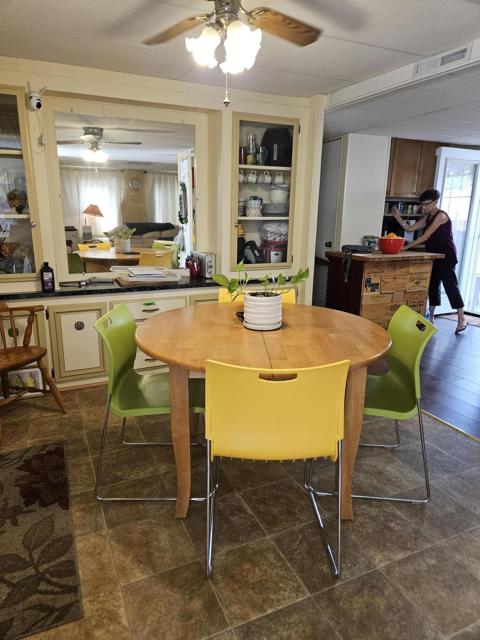 Warm, comfortable, and restful best describes this 2-2 home. It comes to you fully furnished including golf cart. Cozy front patio to sooth the soul, or to enjoy your favorite beverage. Bonus room with wet bar and game table. Outside has covered carport, pet friendly fenced yard, 2 storage sheds and back patio. Tri-Palms Estates and Country Club is a spirited 55+ community that offers unlimited golf for 2 owners on the deed. Residents can also enjoy pickleball,tennis, shuffleboard, pools, hot-tub,banquet room, clubhouse,restaurant, bar and live music. Conveniently located near shopping, restaurants , and medical. Perfect for full time or second home living.