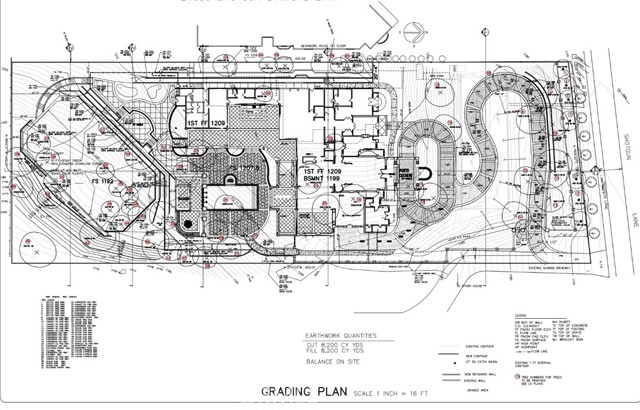 A prior custom estate plan—designed by a renowned architect—was approved by the city in September 2019 (now expired) for an approximately 15,000 sq ft luxury residence. The design included nine suites, guest quarters, a grand 1,500 sq ft great room, gym, courtyard, pool, tennis court, and a subterranean garage accommodating 7+ vehicles.